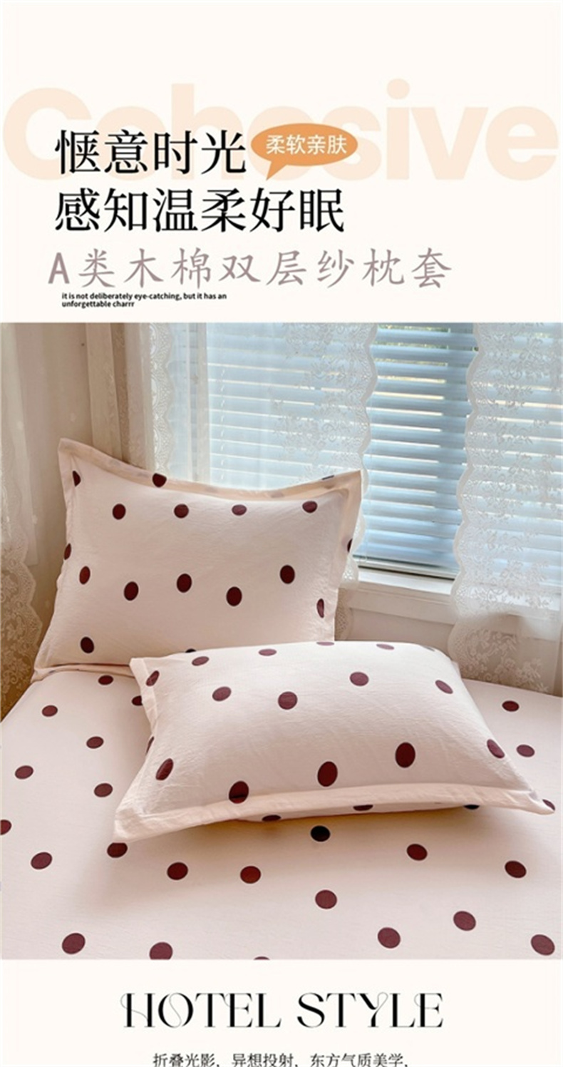 商品名称:梦舒羽 2025新款双层纱枕套宿舍学生单只枕芯套枕头内胆套一对装-缤纷波点 波点-咖啡色