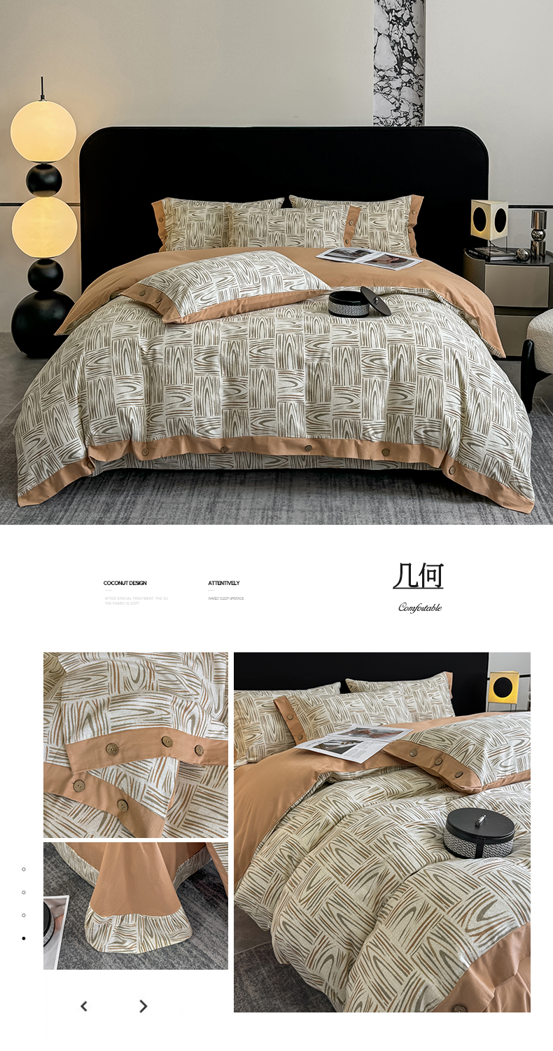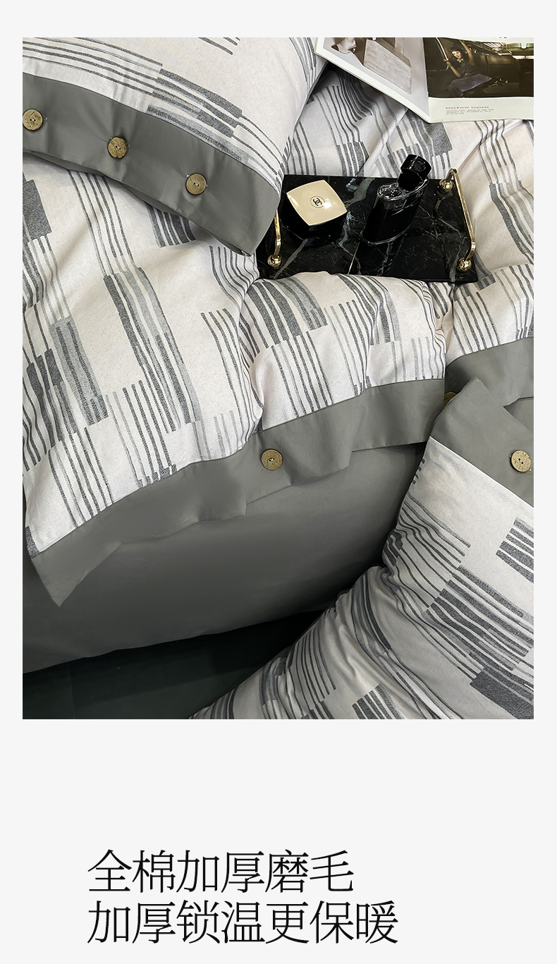 慕希家纺 2025新款全棉纯棉轻奢加厚磨毛纽扣款四件套 品思-灰