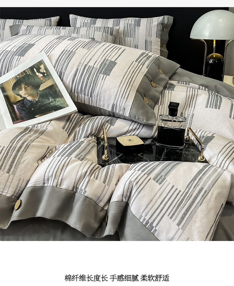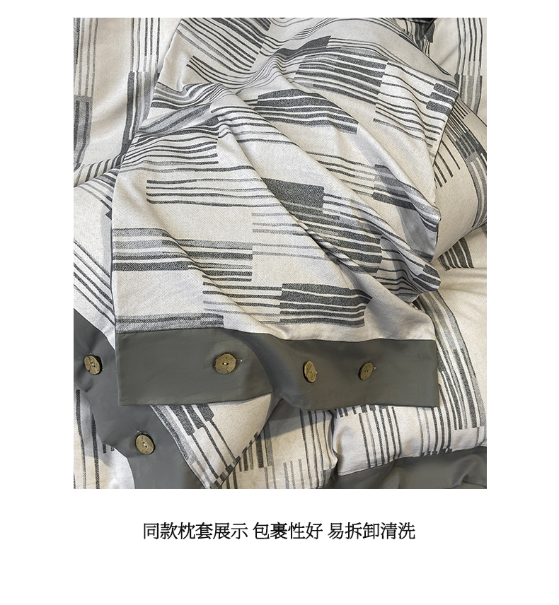 商品名称:慕希家纺 2025新款全棉纯棉轻奢加厚磨毛纽扣款四件套 品思-灰