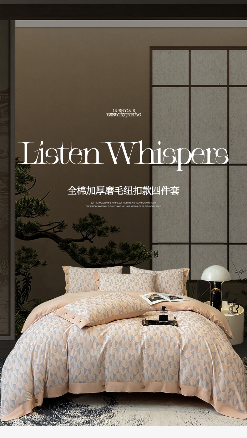 商品名称:慕希家纺 2025新款全棉纯棉轻奢加厚磨毛纽扣款四件套 知凡