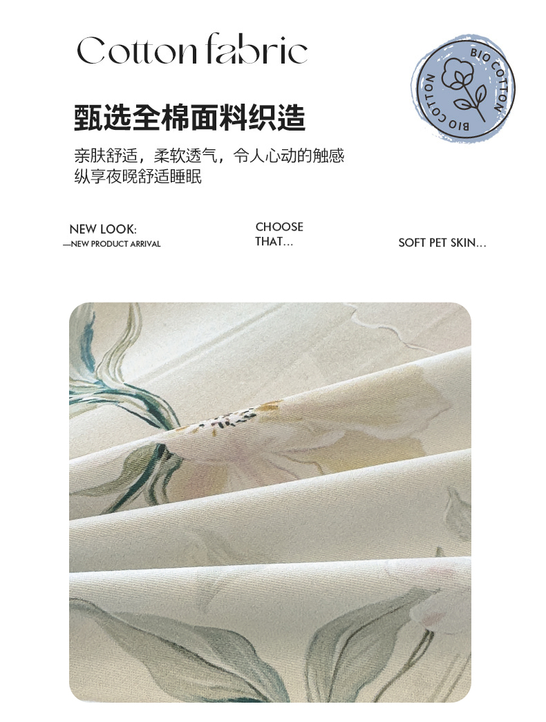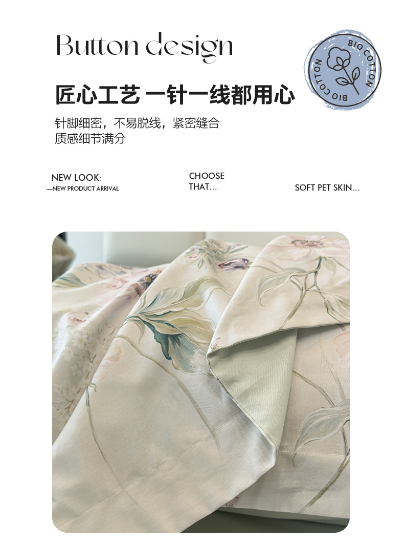 商品名称:洺兰家居 2025新款高支高密轻奢数码印花四件套长绒棉纯棉四件套 云游-绿