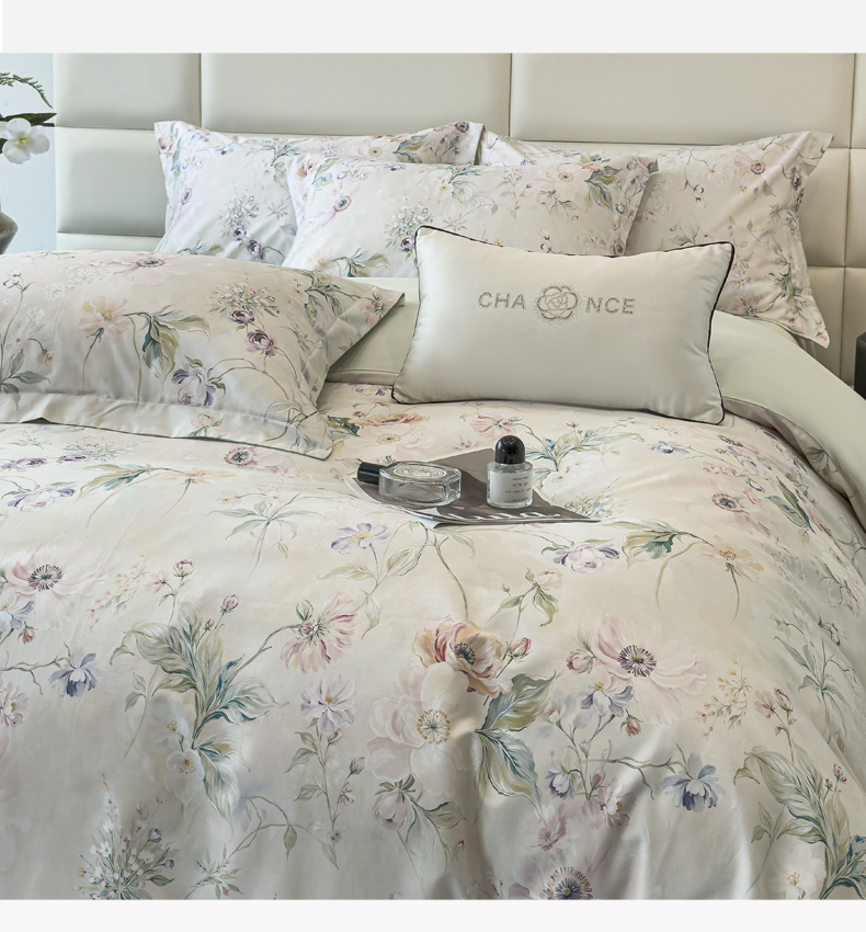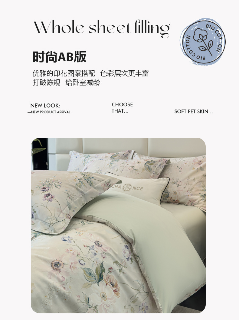 (总)洺兰家居 2026年新疆长绒棉100支天丝棉高端工艺款床单床笠四件套床上用品,淡若清香,陌上花开,羽墨