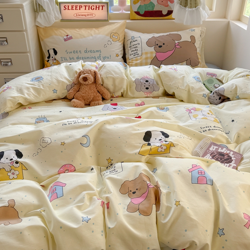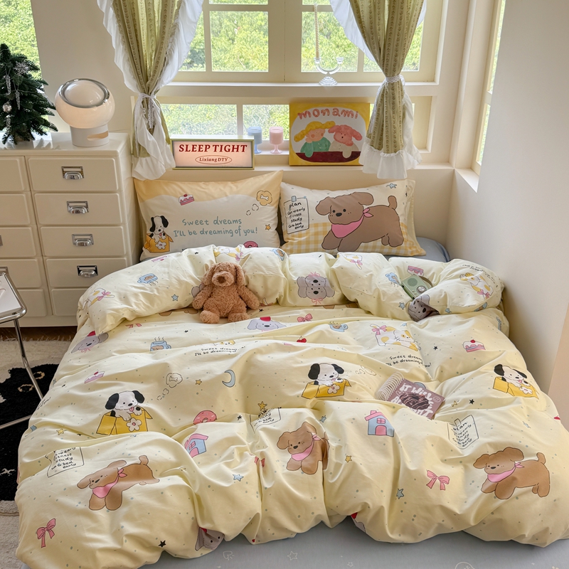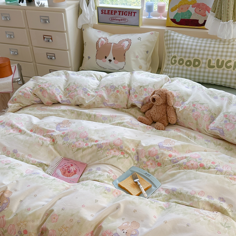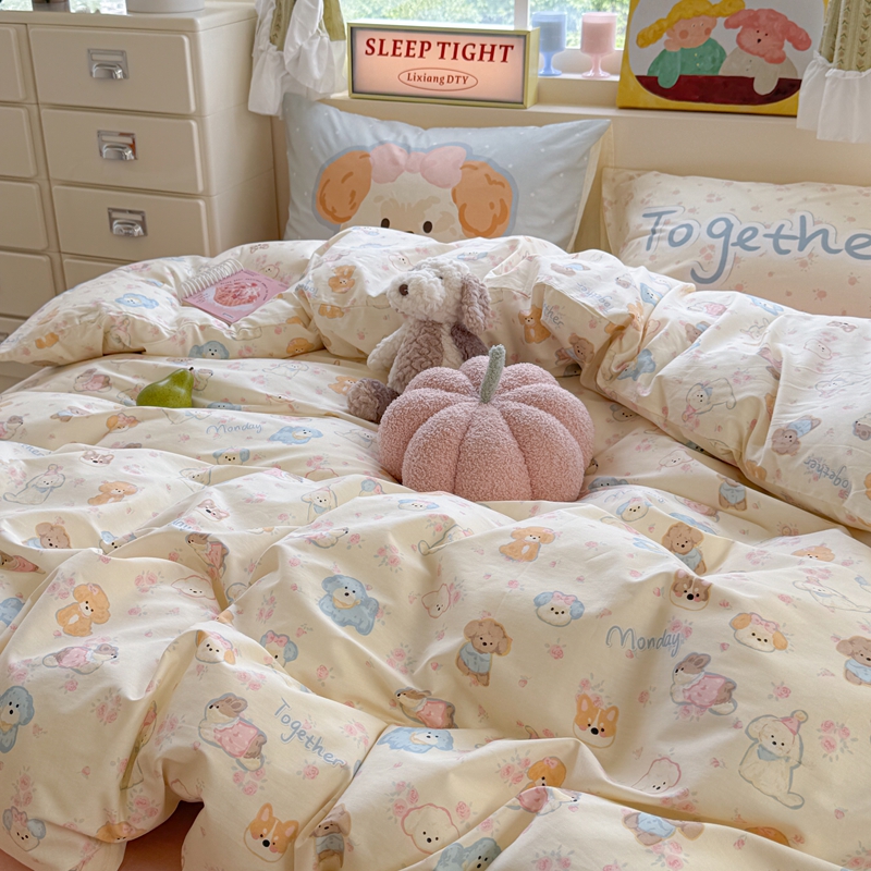 当前位置: 91家纺网 > 商品网购 > 床品套件 > 四件套 > 全棉普通四件套 > 觅糖家纺 2025新款开学季40支13370全棉纯棉斜纹四件套 春日小熊