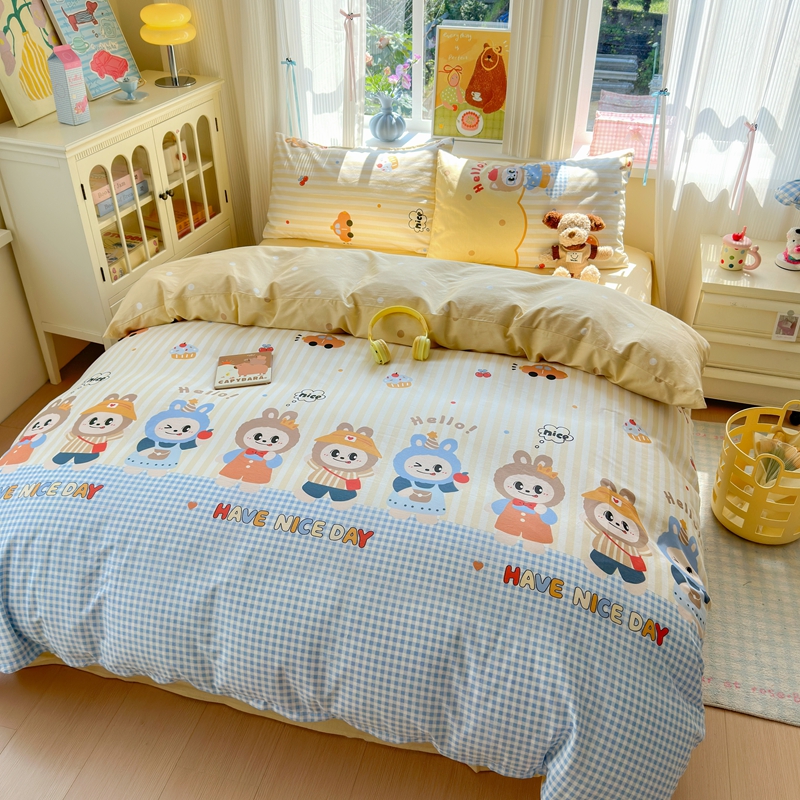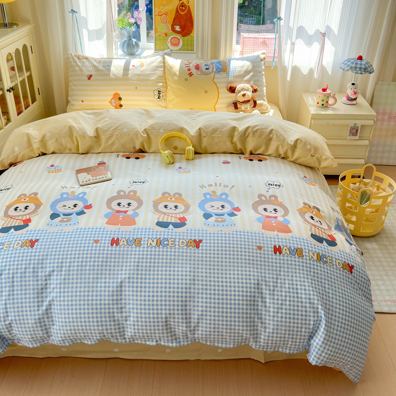 当前位置: 91家纺网 > 商品网购 > 床品套件 > 四件套 > 全棉普通四件套 > 觅糖家纺 2025春夏新款40支全棉纯棉斜纹13370针织四件套 潮流玩伴