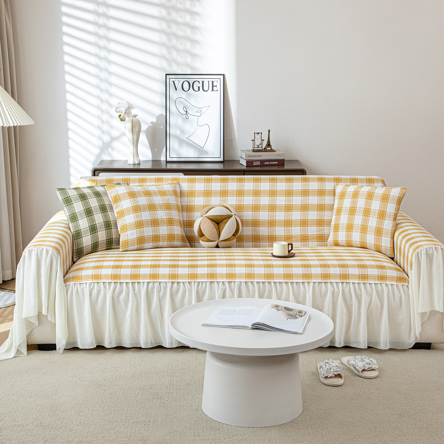 当前位置: 91家纺网 > 商品网购 > 居家布艺 > 坐垫/椅垫/沙发垫 > 沙发 > 沐沐家纺 2026新款棋格裙边沙发巾 橘棋格