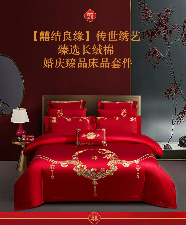 当前位置: 91家纺网 > 商品网购 > 床品套件 > 四件套 > 婚庆四件套 > 蒂爵 2025新款婚庆长绒棉时尚小红书爆款刺绣婚庆四件套多件套-无提花款 锦绣芳华