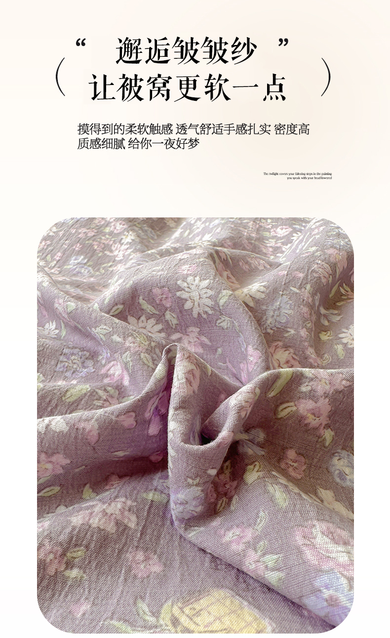 (总)美梦家纺 2026春夏新款云感皱皱纱床盖四件套,玫瑰园,芭比兔,波点咖,椿庭序,见花则喜,蜡笔画,葡萄多多,俏皮狗,苏槿,星眠云野,枝语花繁,竹歆花语