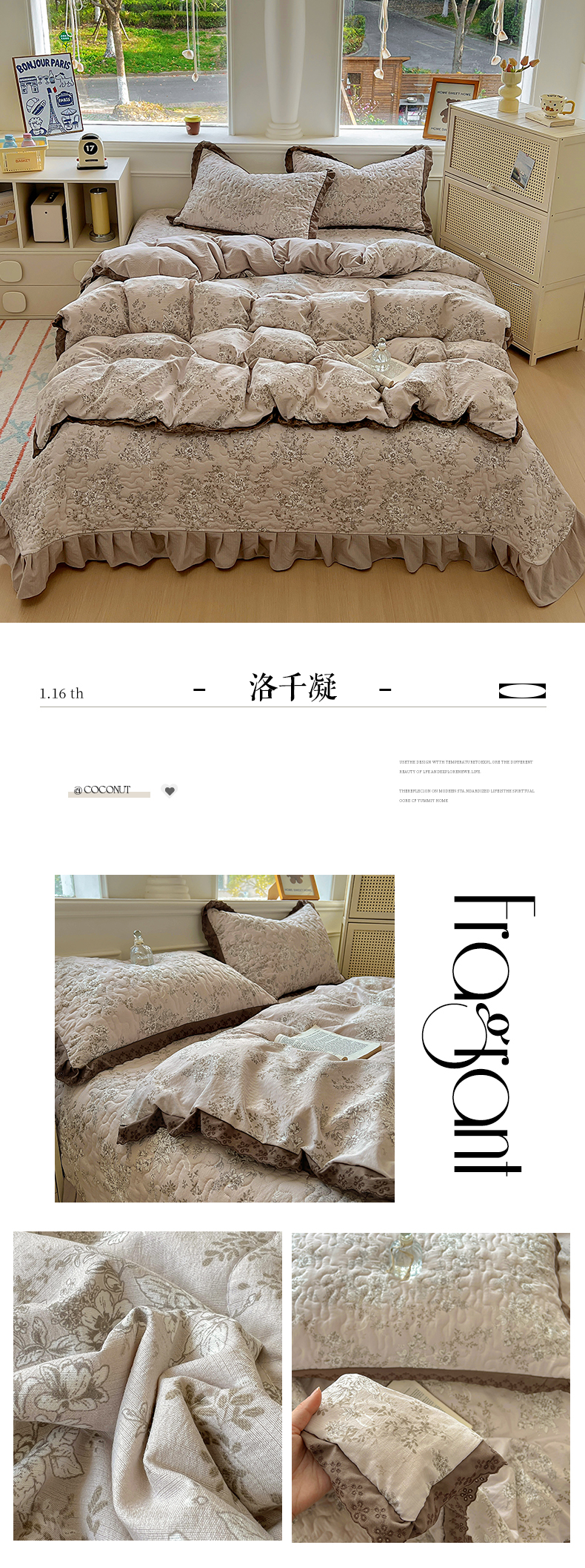 商品名称:美梦家纺 2025新款皱皱纱花边夹棉床盖四件套 椿茶