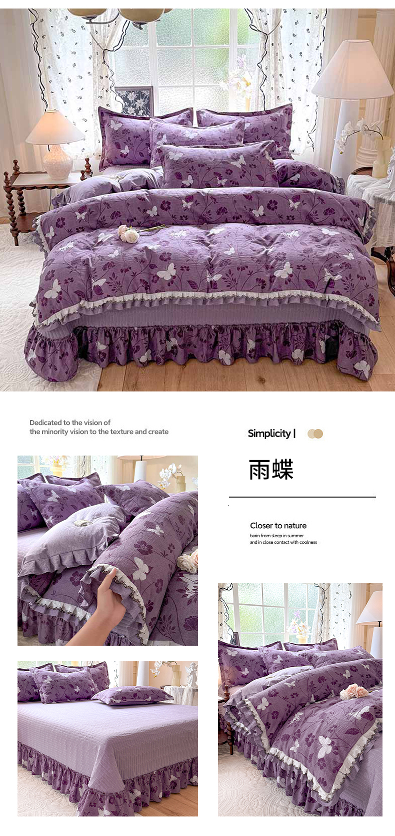 韩约家纺 2025新款1双层刺绣花边法式床盖款棉麻四件套(全网控价:不低于1.5m139,1.8m144,2.0m149,2.0加大154) 雨蝶