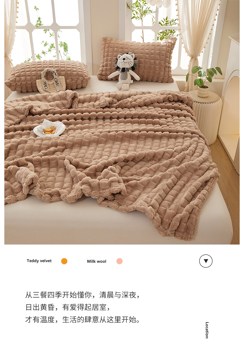 (总)楼兰公主 2025新款竹节绒毛毯,豆沙粉,卡其色,抹茶绿,奶油咖,深灰色,烟雾蓝,组合图仅供参考