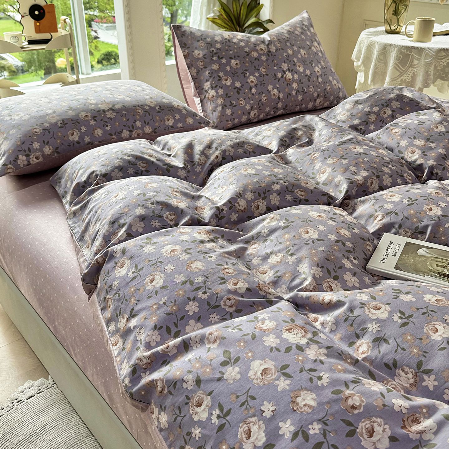 商品名称:缦纱2025新款全棉小清新喷气13372印花40支纯棉四件套 丛果集