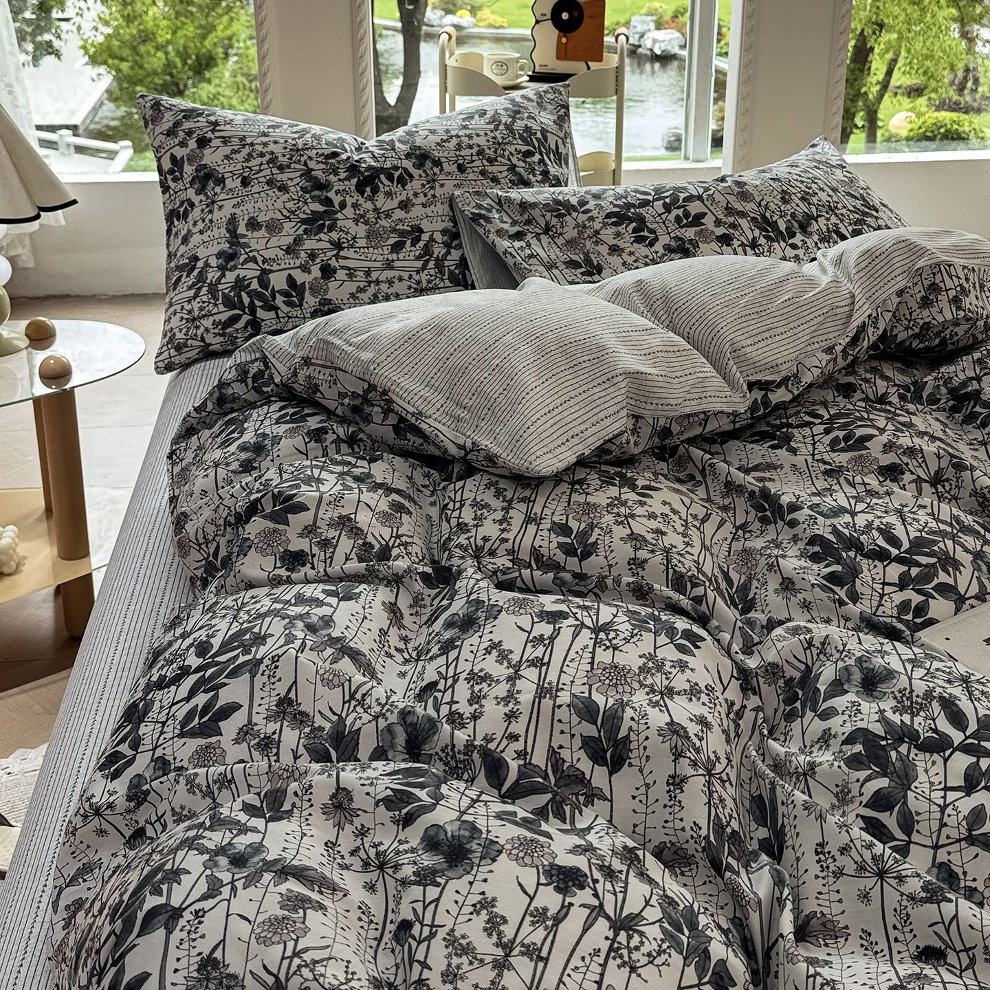 缦纱2025新款全棉小清新喷气13372印花40支纯棉四件套 丛果集