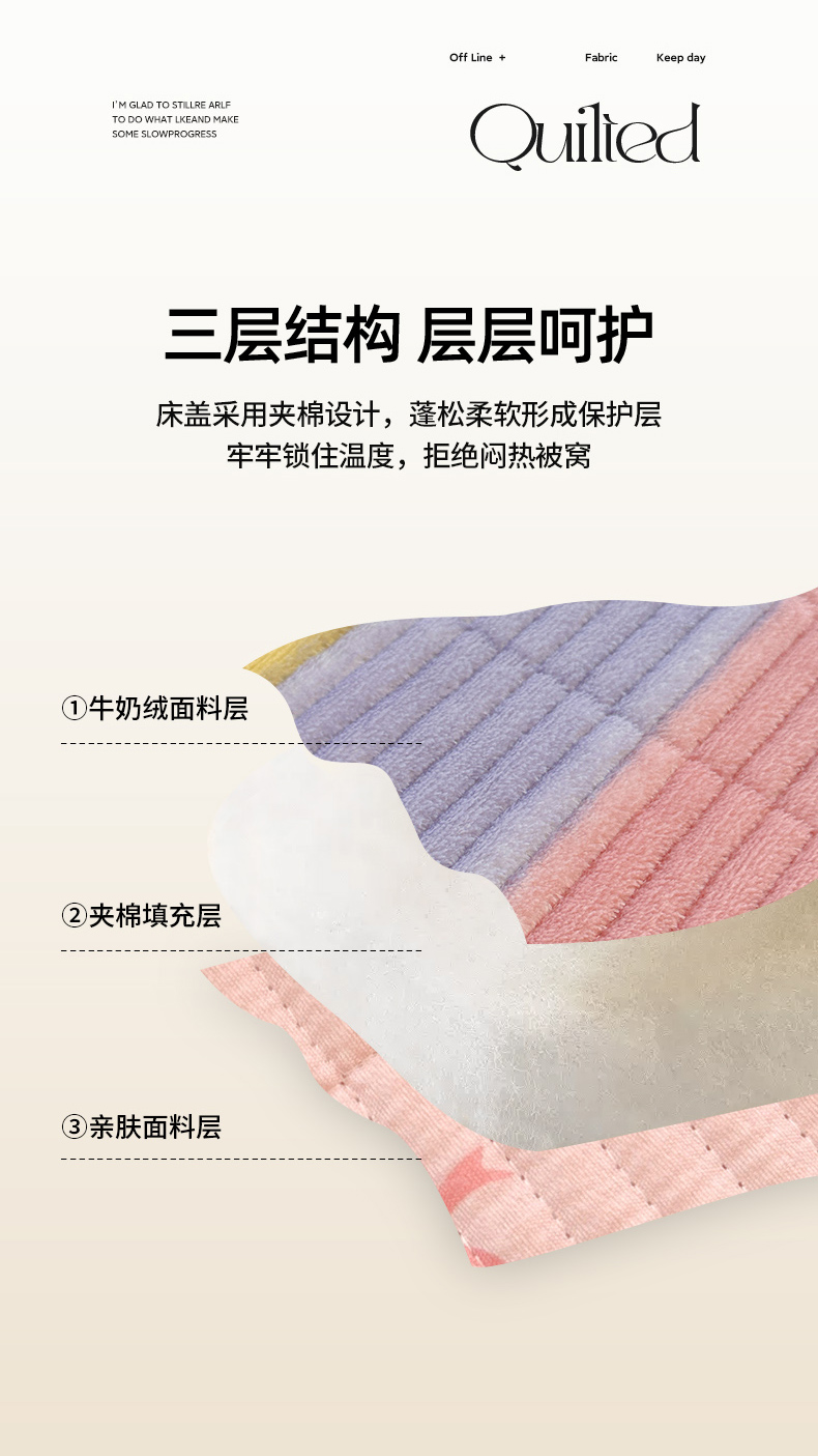 • 91家纺网 家纺一手货源 找家纺 梵朴 2025新款印花牛奶绒珊瑚绒夹棉直角包边款床盖榻榻米炕盖 咖爱心