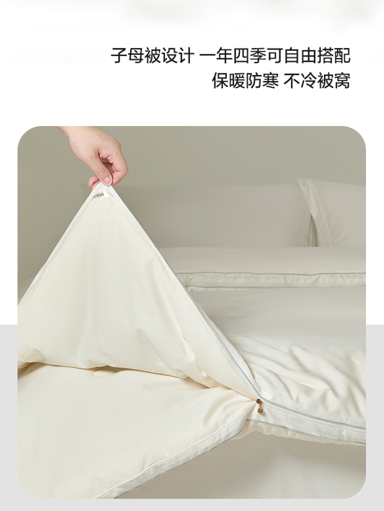 (总)纪梵茜 2025新款李官奇正品授权80%大豆被子全棉纯棉拉链子母被双胎二合一冬被-格伦,大豆原棉子母被-格伦