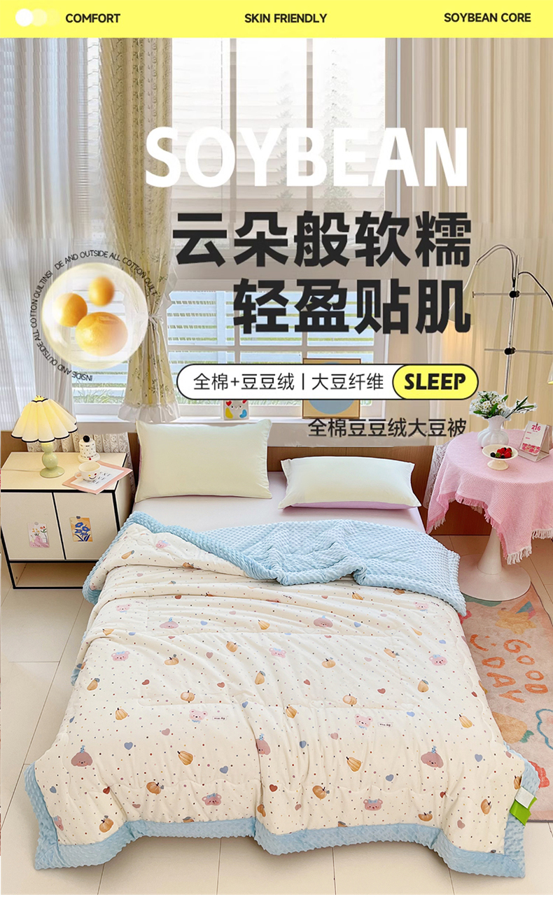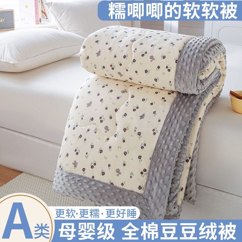 商品名称:柏薇 2025新款A类全棉纯棉豆豆绒被 被子被芯 桃桃