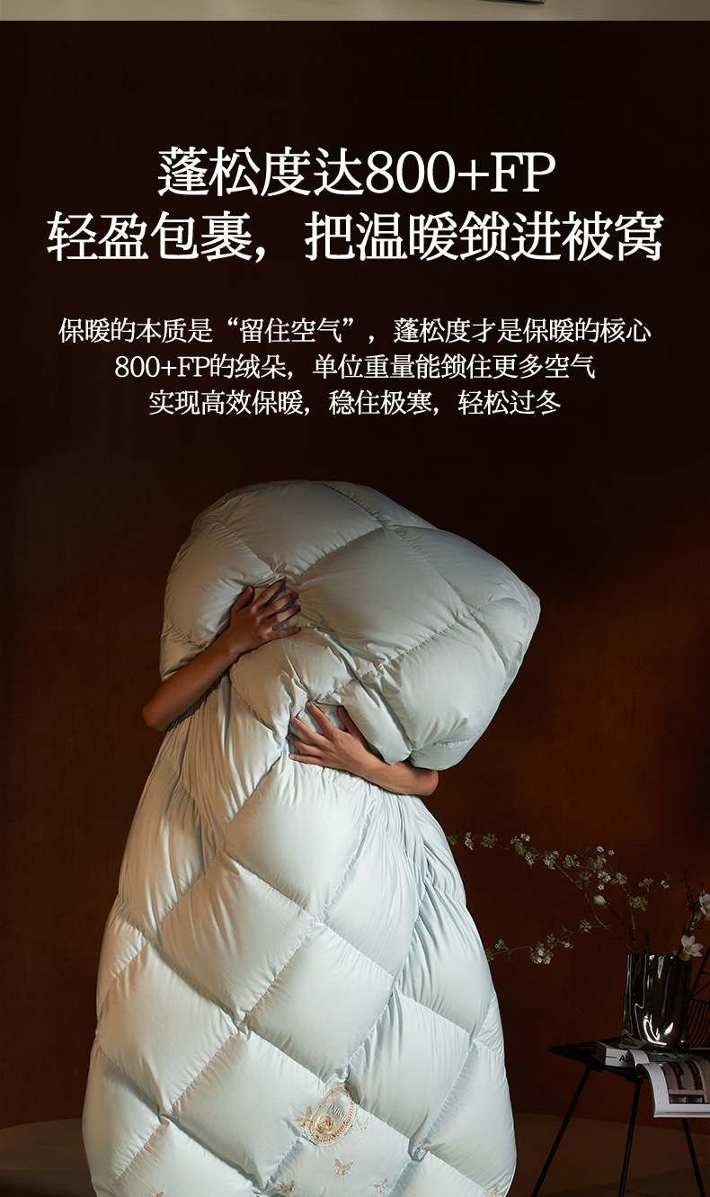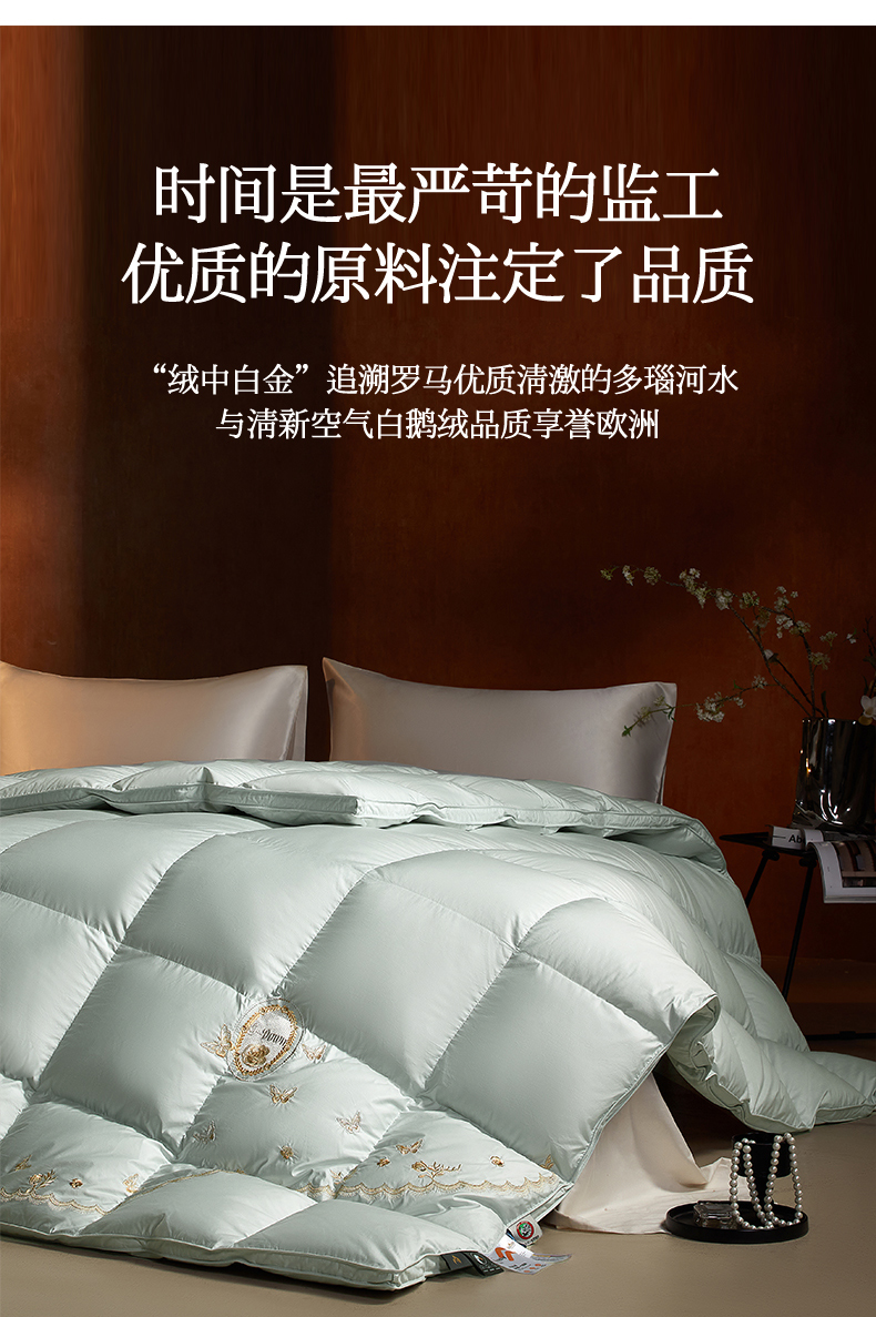 • 91家纺网 家纺一手货源 找家纺 织梦人羽绒工厂店2025新款高蓬松羽绒被95鹅绒大牌同款花型-绣花蝶韵蝶舞drio 蝶羽-水绿
