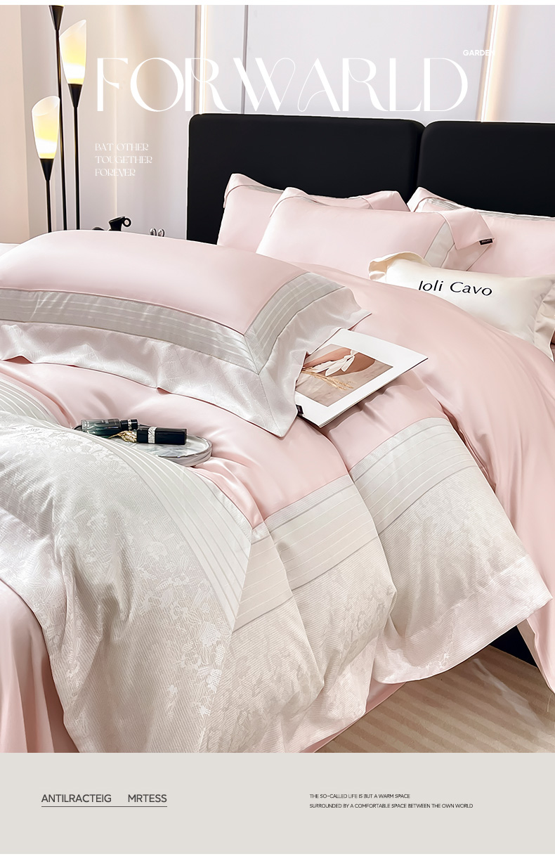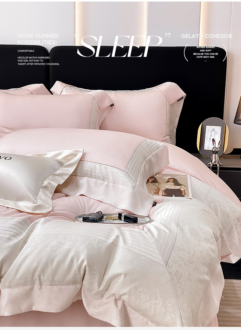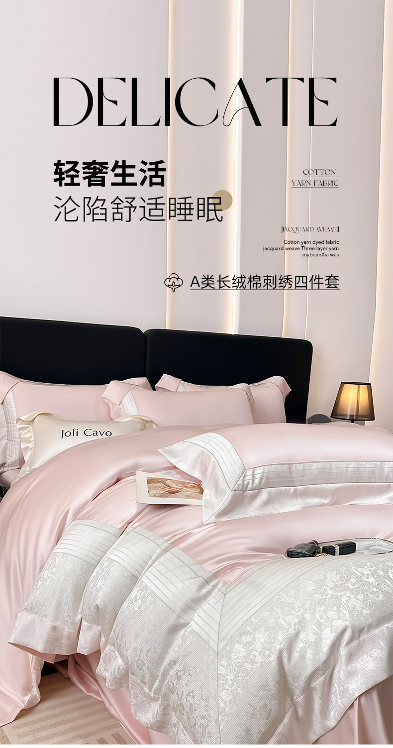 当前位置: 91家纺网 > 商品网购 > 床品套件 > 四件套 > 水晶绒四件套 > 2025新款秋冬A类贡缎提花长绒棉四件套全棉纯棉轻奢风重工拼接被套纯色床单床笠高端床上用品-莫黛 莫黛-觅静粉