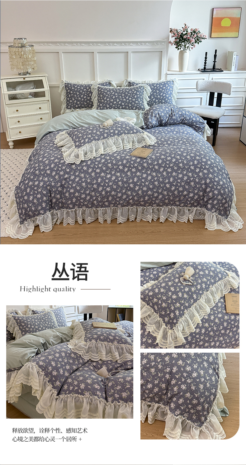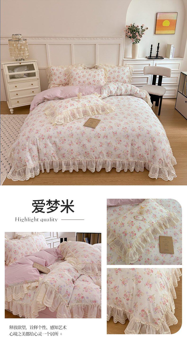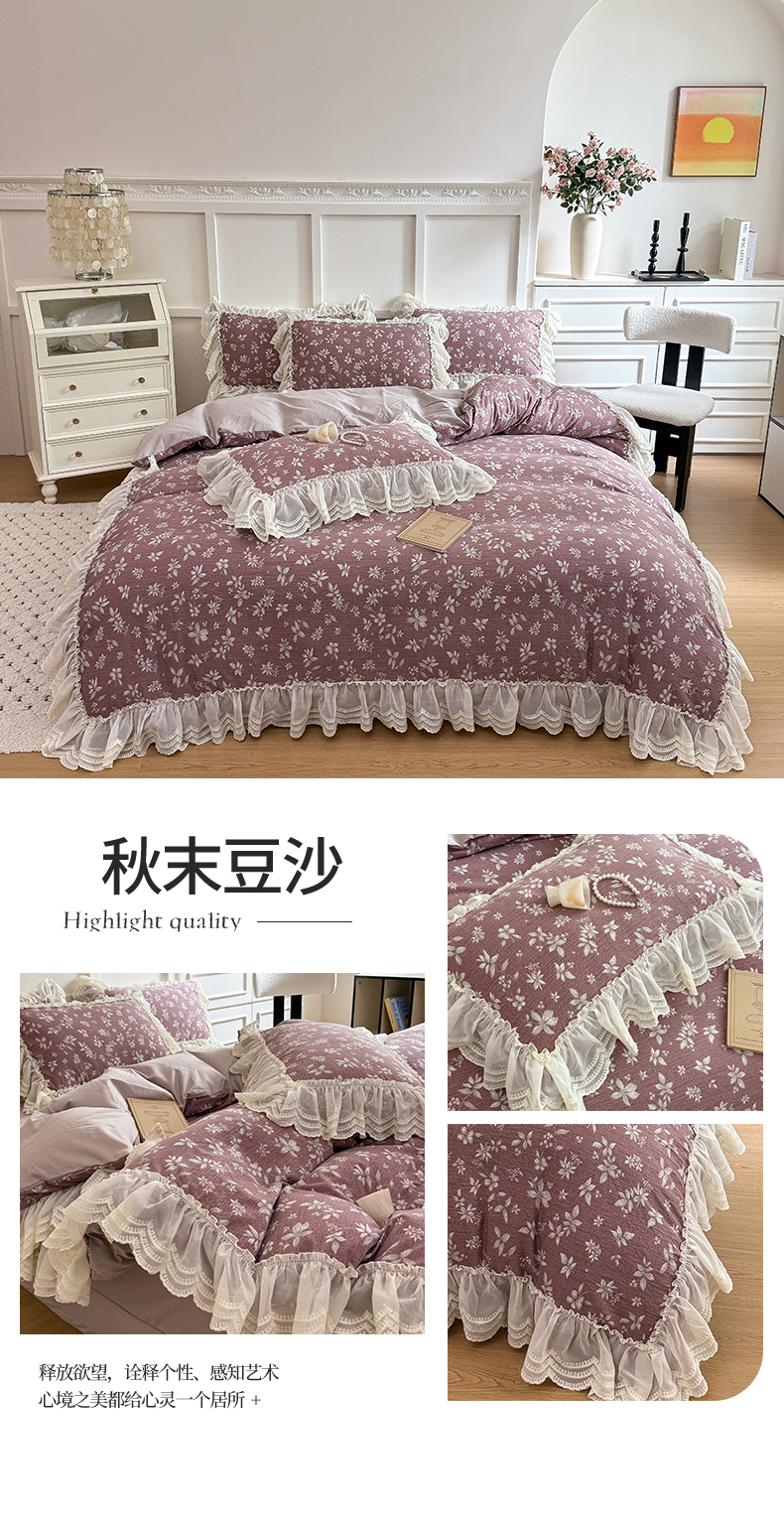 商品名称:吾欢心 2025新款韩版蕾丝花边加厚原棉四件套 丛语
