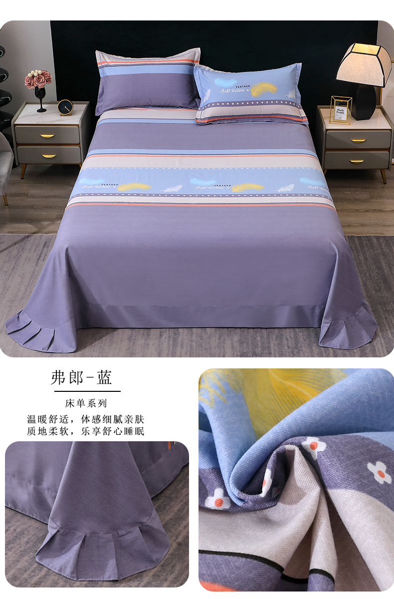 商品名称:馨雅家纺 2025新款全棉纯棉磨毛系列床单单品床单单件单床单 弗郎-蓝