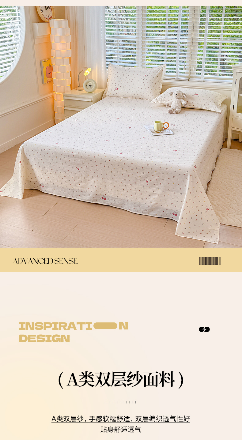 一诺家居 2025新款A类云感双层纱针织棉印花母婴级裸睡床单三件套 量大可优惠 量大可送货 云纱