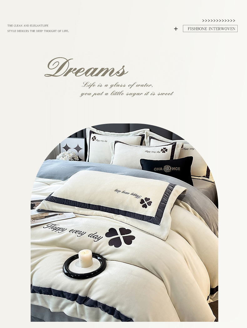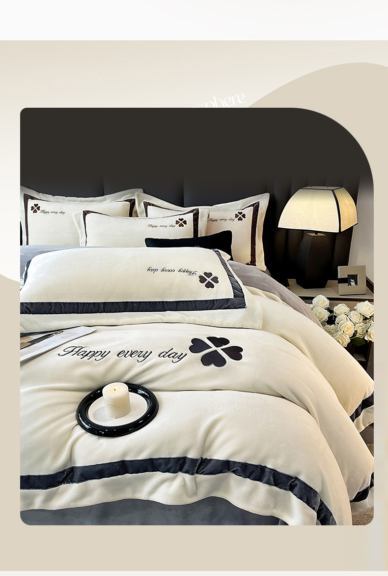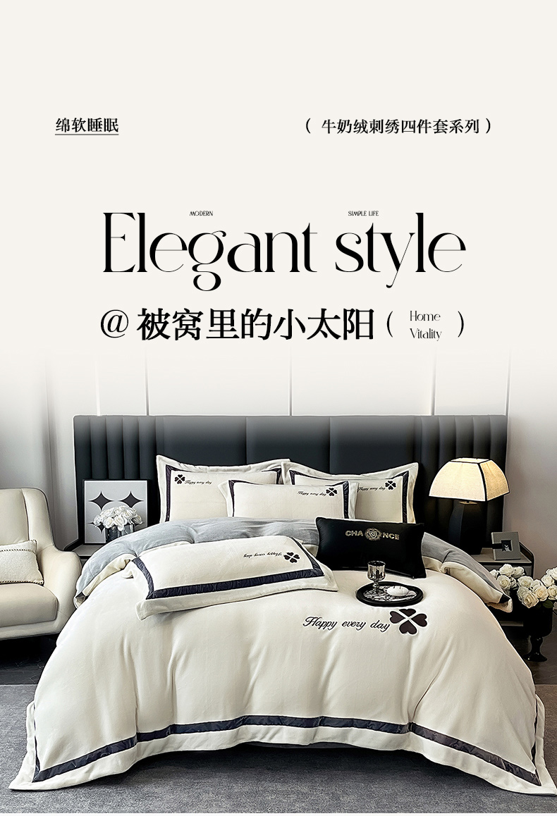 当前位置: 91家纺网 > 商品网购 > 床品套件 > 四件套 > 牛奶绒四件套 > 妮恒美家纺 2025新款牛奶绒刺绣四件套-简爱系列 简爱-绅士白+浅灰