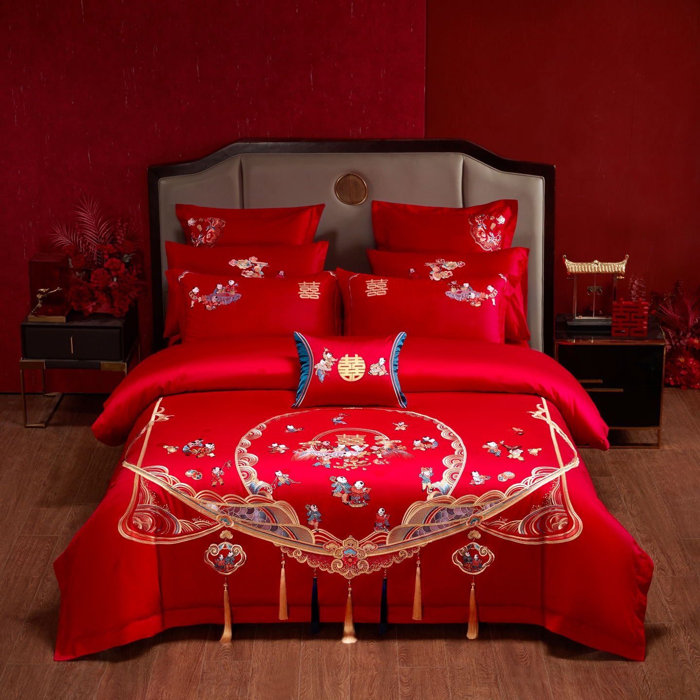 当前位置: 91家纺网 > 商品网购 > 床品套件 > 四件套 > 婚庆四件套 > 宏羽纺家纺 2025新款高支高密纯棉婚庆系列四件套 百子登科