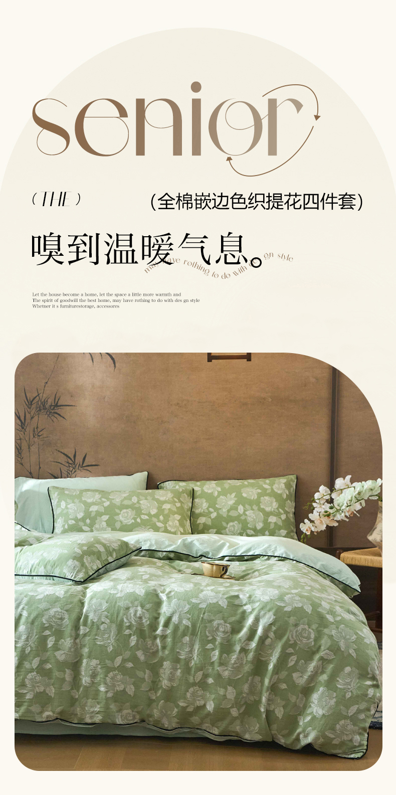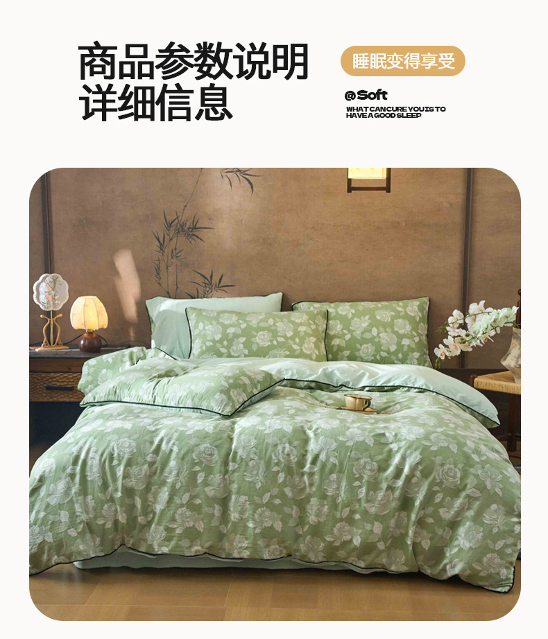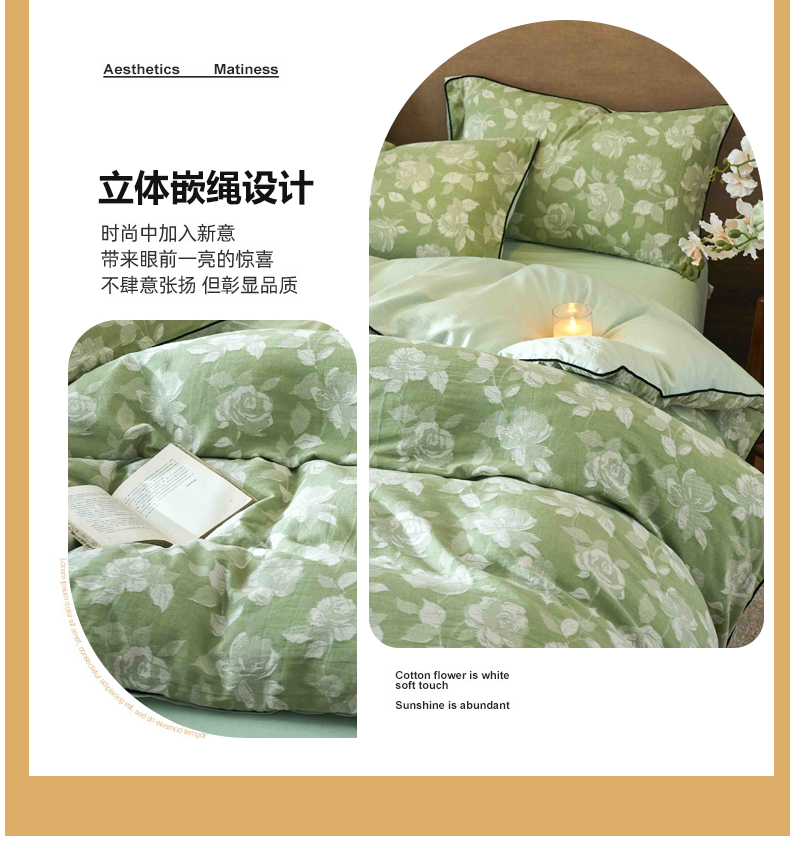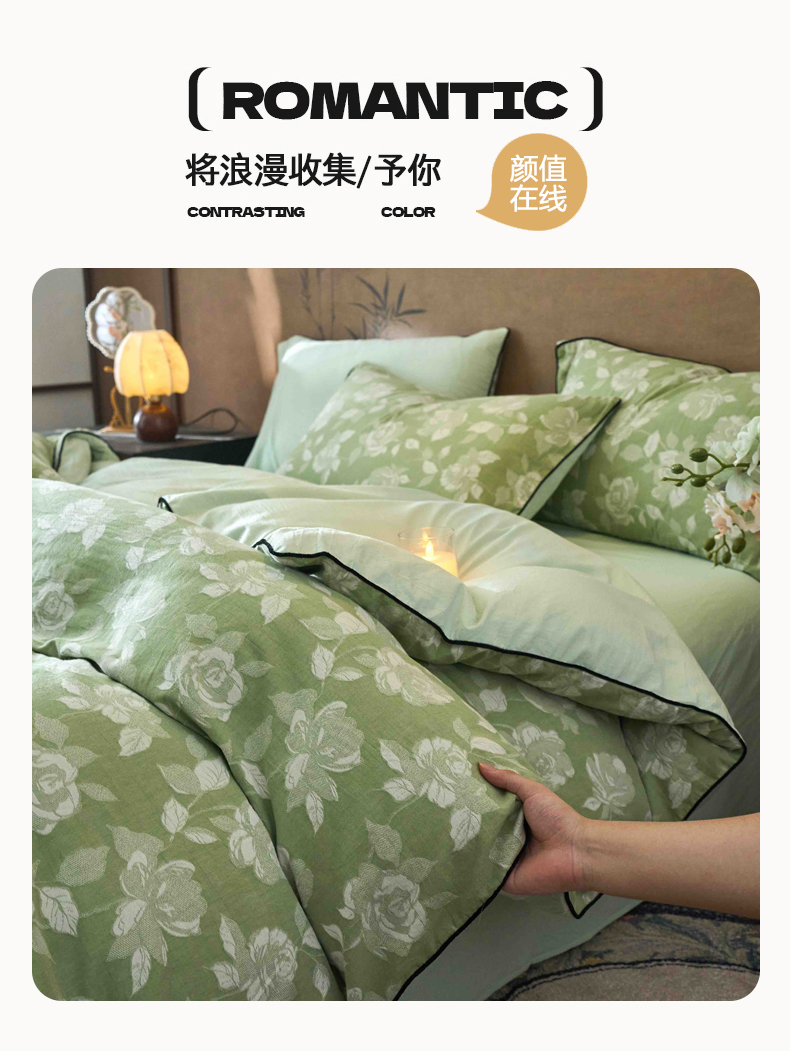 当前位置: 91家纺网 > 商品网购 > 床品套件 > 四件套 > 全棉普通四件套 > 兰紫橙家纺 2025新款全棉纯棉嵌边色织提花四件套 玫瑰之约-草绿