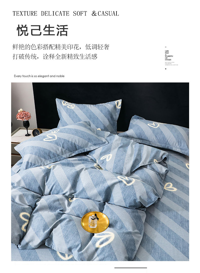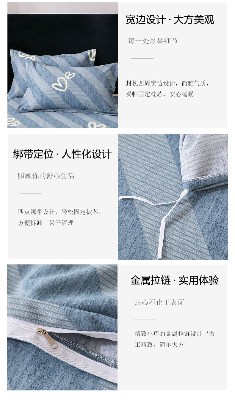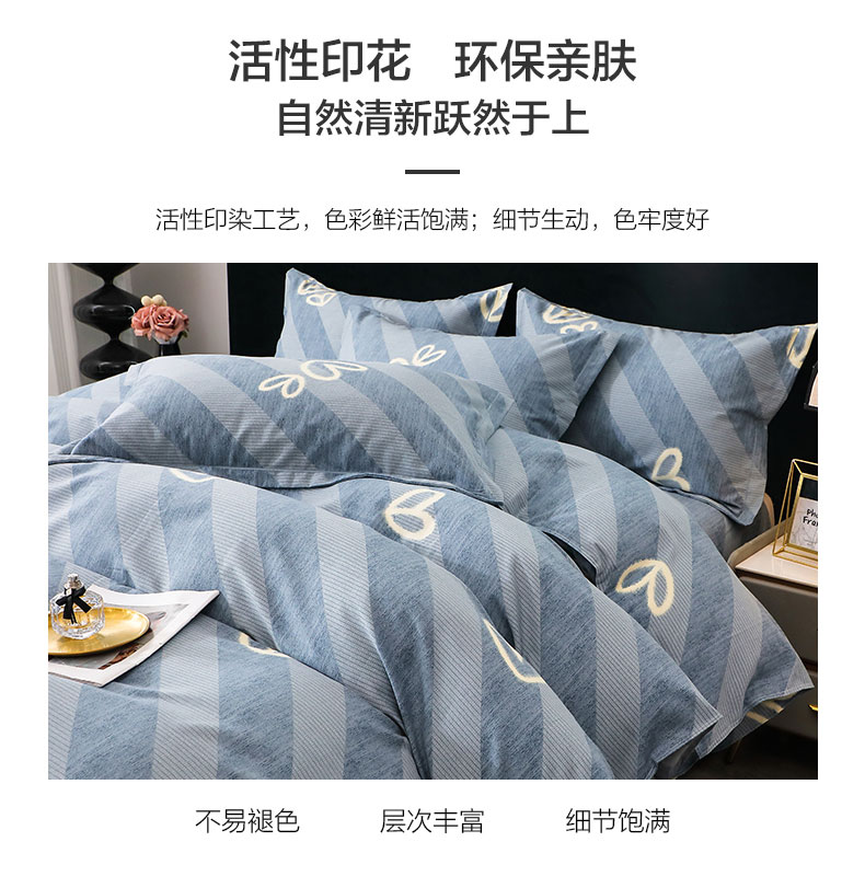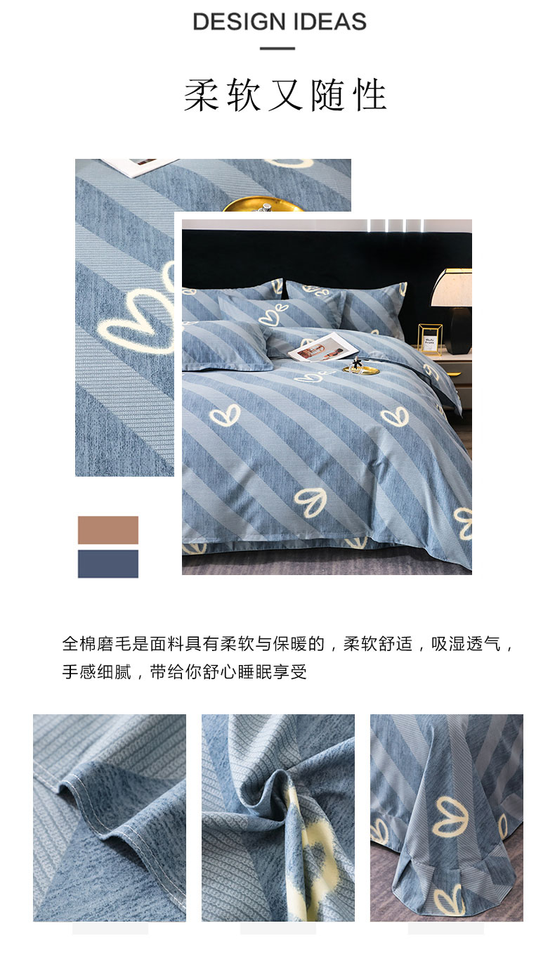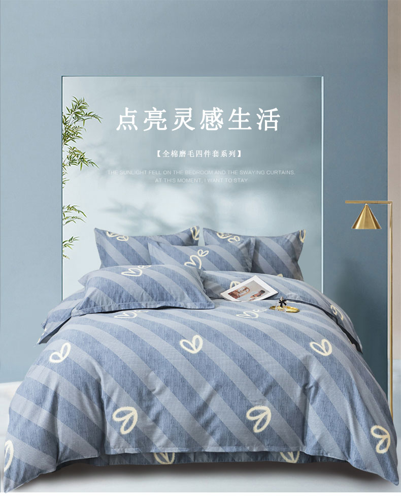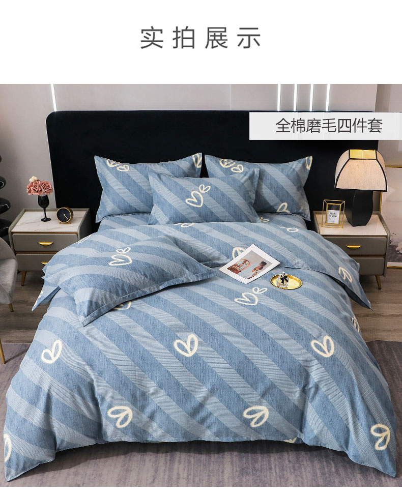 商品名称:馨雅家纺 2025新款全棉纯棉磨毛系列四件套 一心一意-蓝