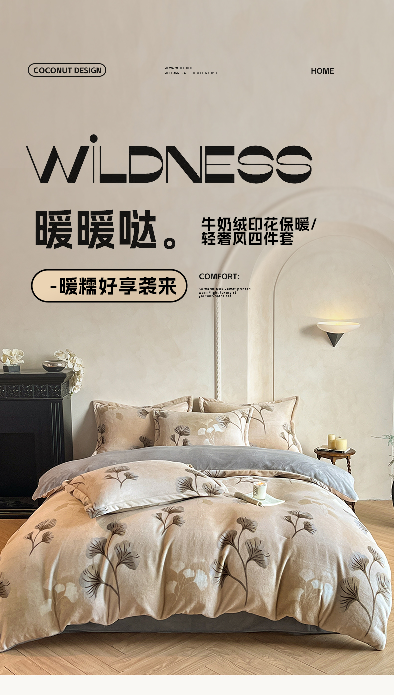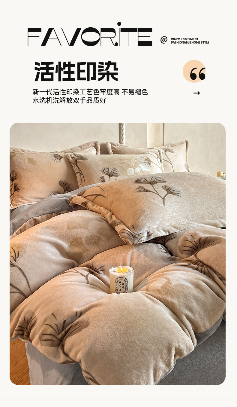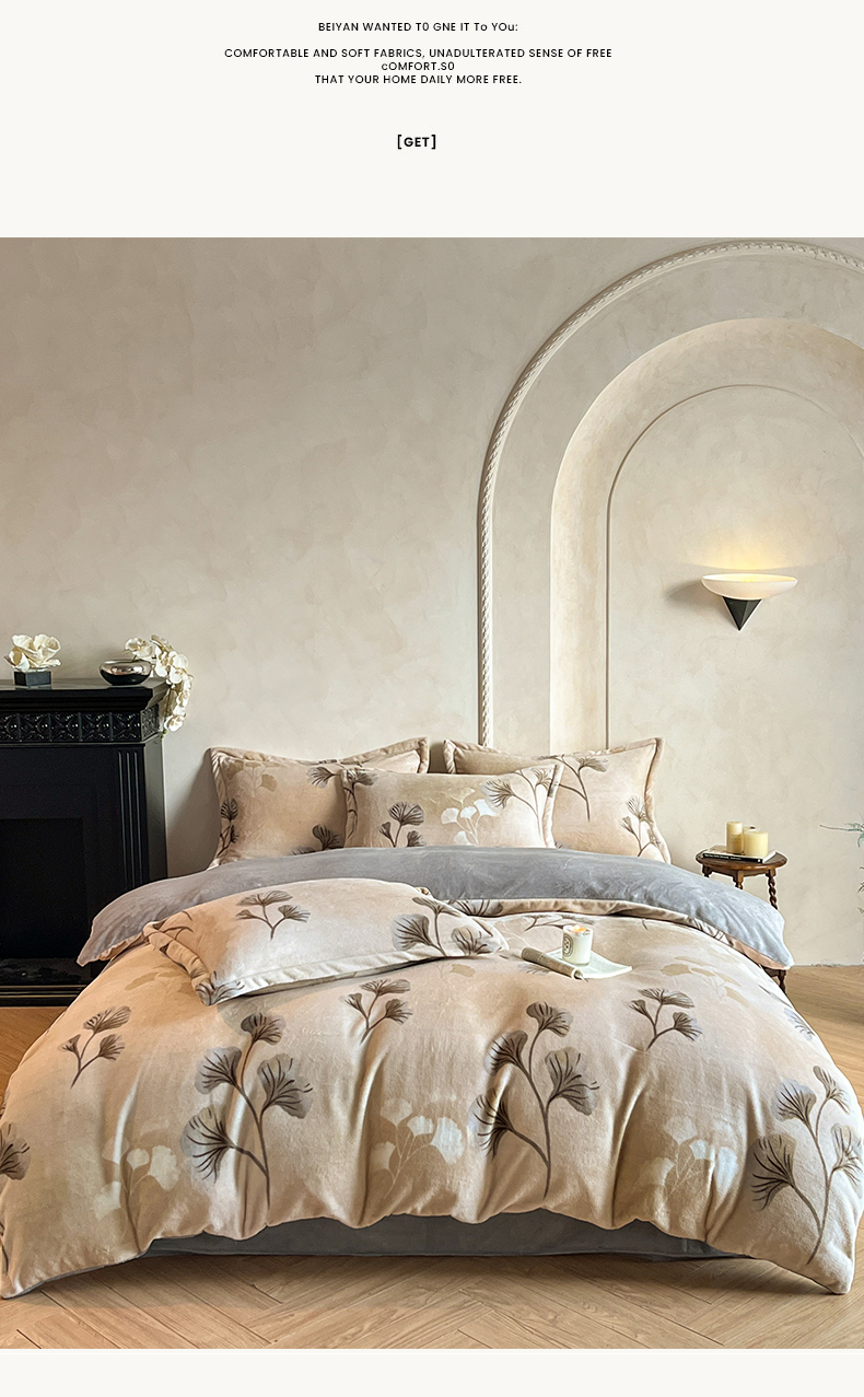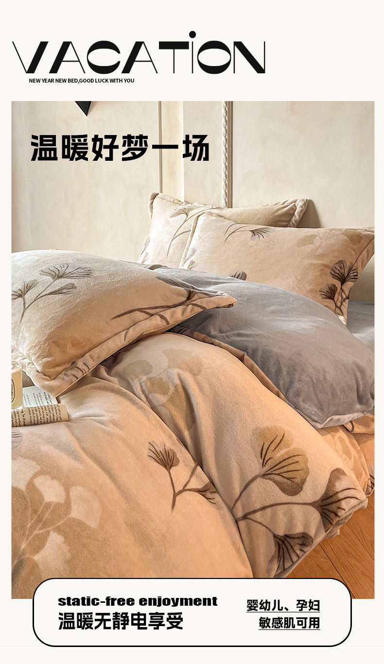 当前位置: 91家纺网 > 商品网购 > 床品套件 > 四件套 > 牛奶绒四件套 > 川悦生活 2025新款轻奢风高克重牛奶绒印花保暖四件套 沐月银杏