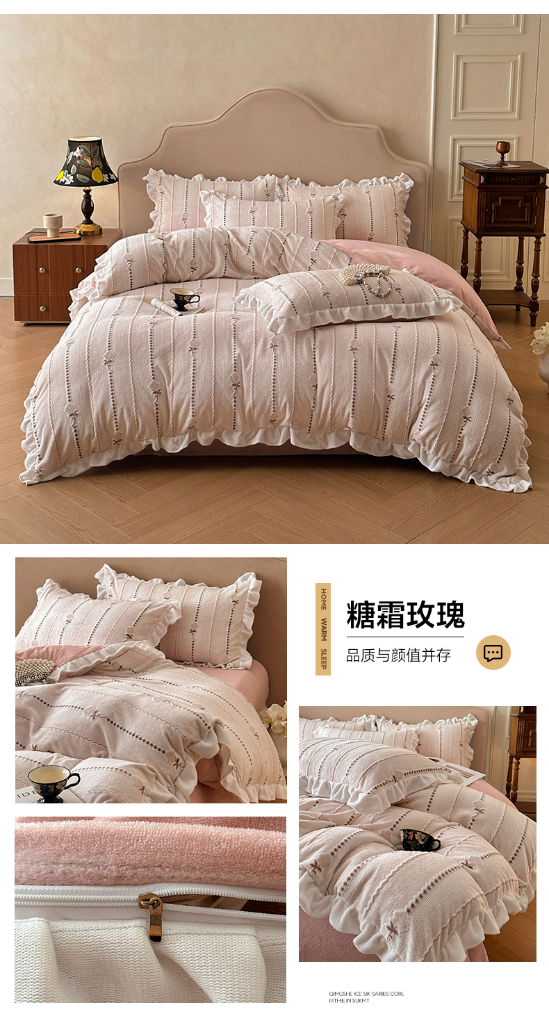 商品名称:澳梵家居 2025新款雕花牛奶绒韩版四件套-玫瑰蝶语 粉钻花漾
