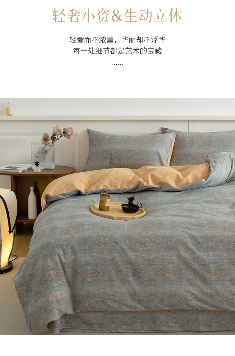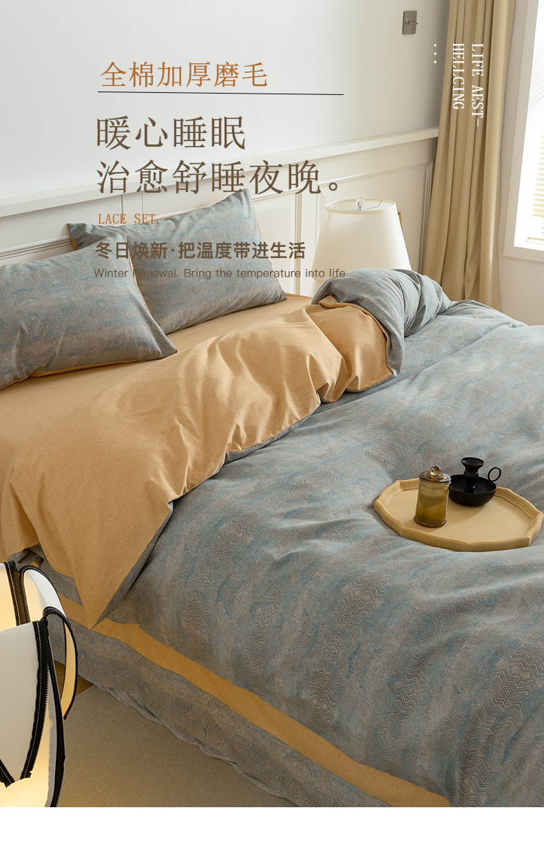 绫韵家纺 2025秋冬新品生态全棉磨毛冬季纯棉磨毛四件套系列 拾秋兰