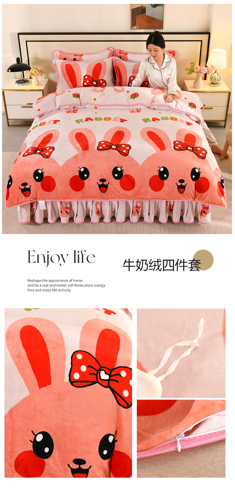 (总)雨洋家纺 2025新款10斤印花牛奶绒四件套,发财鹿,粉色牡丹,富贵吉祥,富士山,花间秒雨,可爱兔粉,浪漫花雨,维也纳,温婉佳人