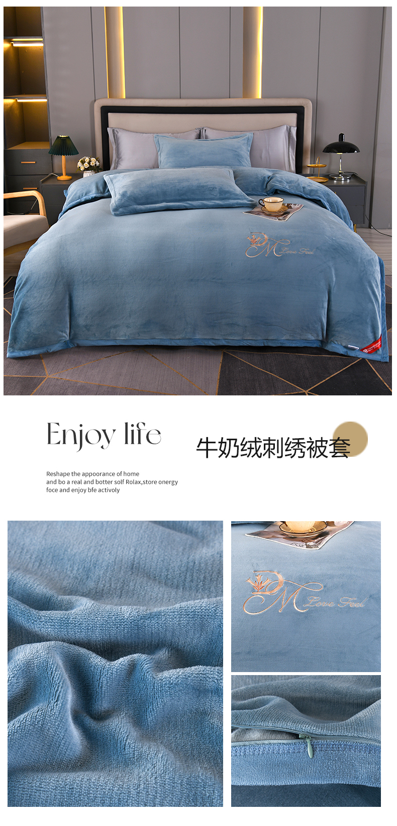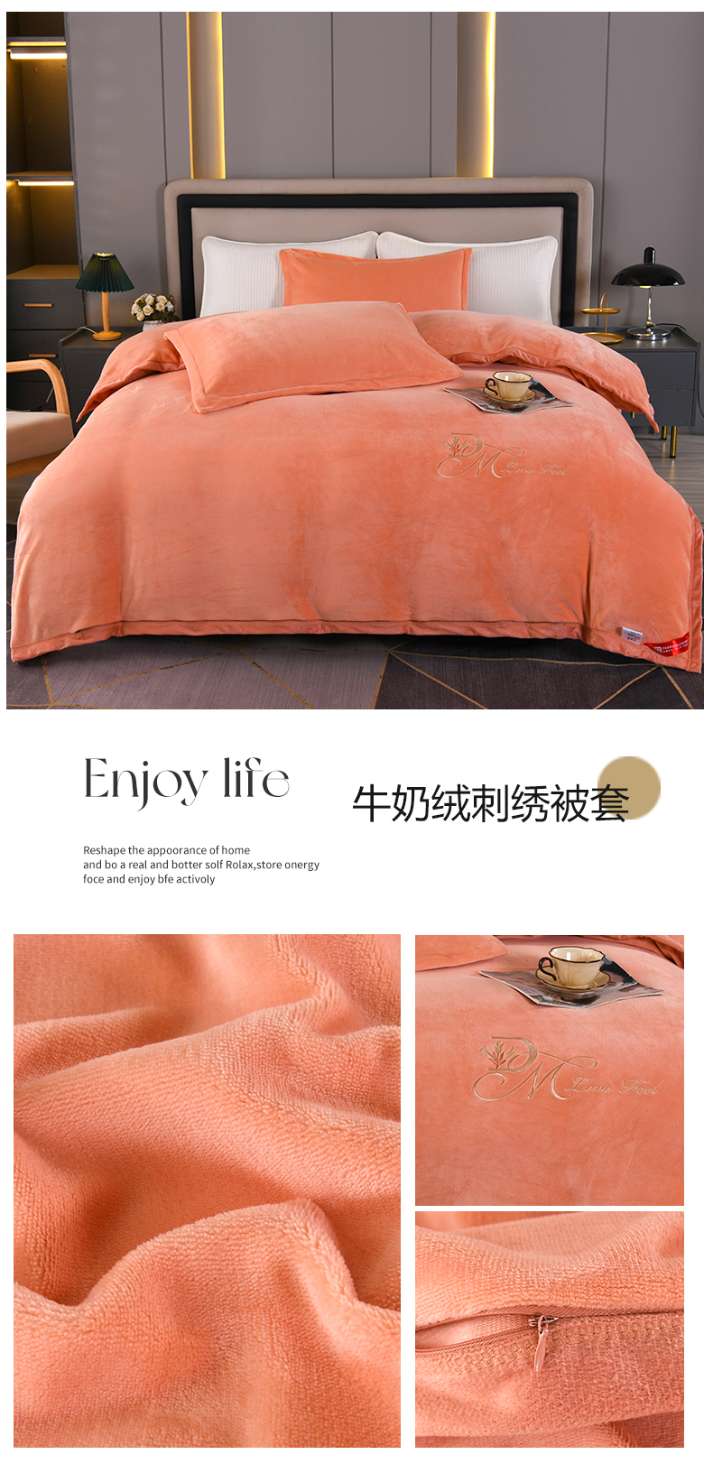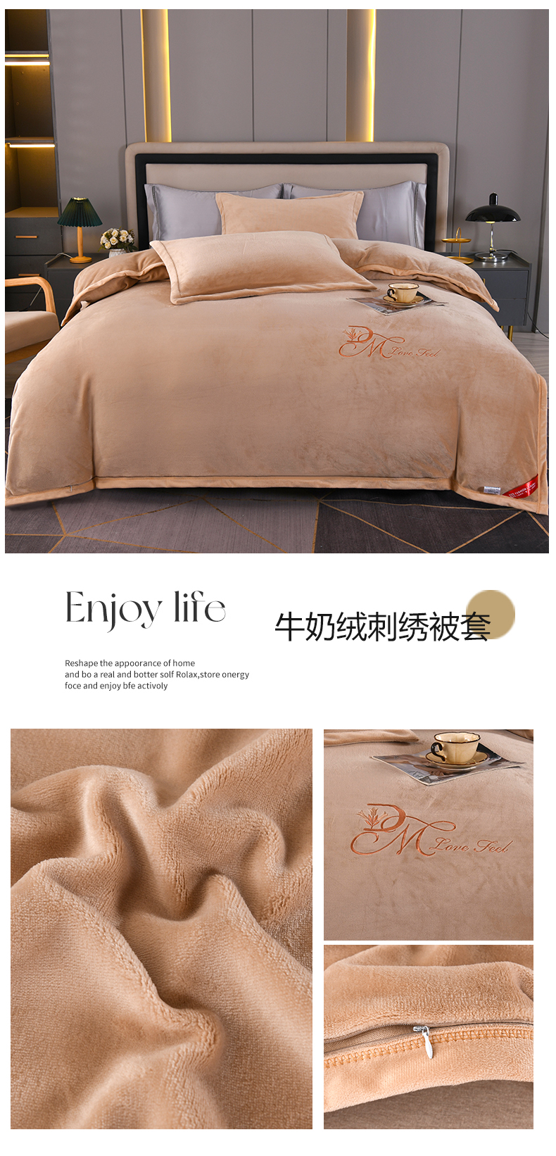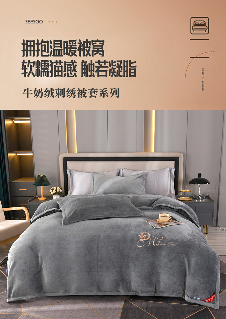 商品名称:尚品凤凰 2025新款牛奶绒绣花单被套单品被套单件被套 豆沙