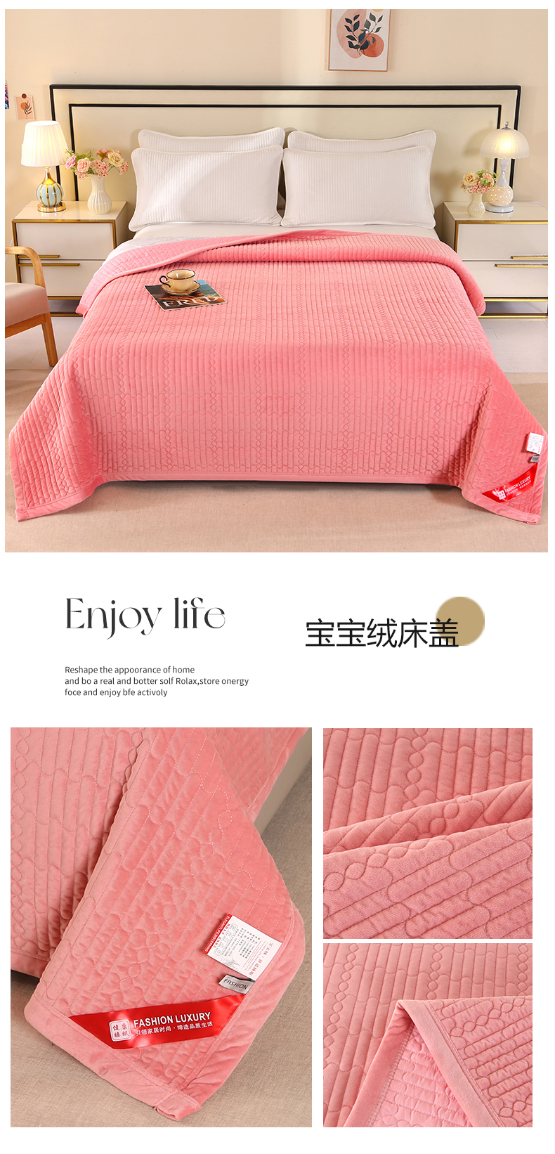 商品名称:尚品凤凰 2025新款加厚宝宝绒直角绗缝夹棉单床盖单品床盖单件床盖 紫色