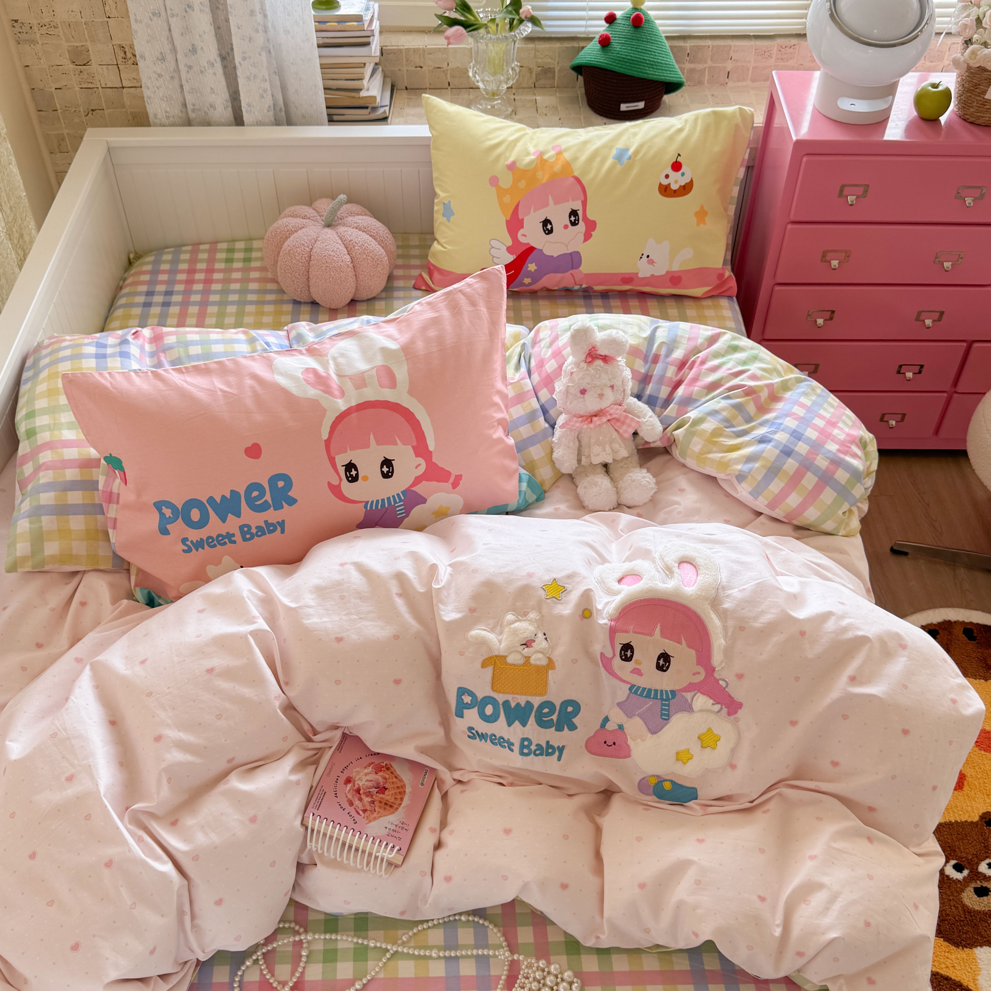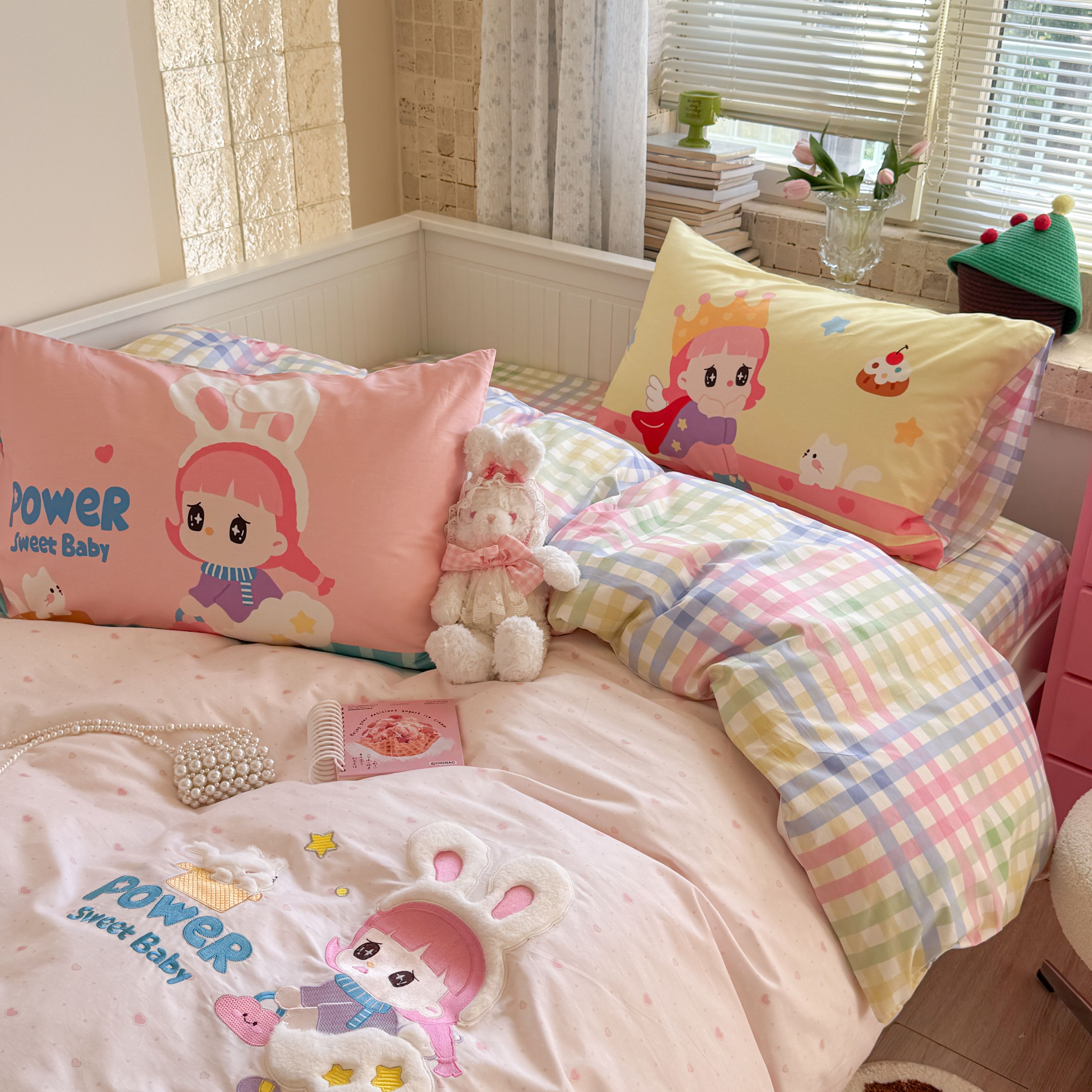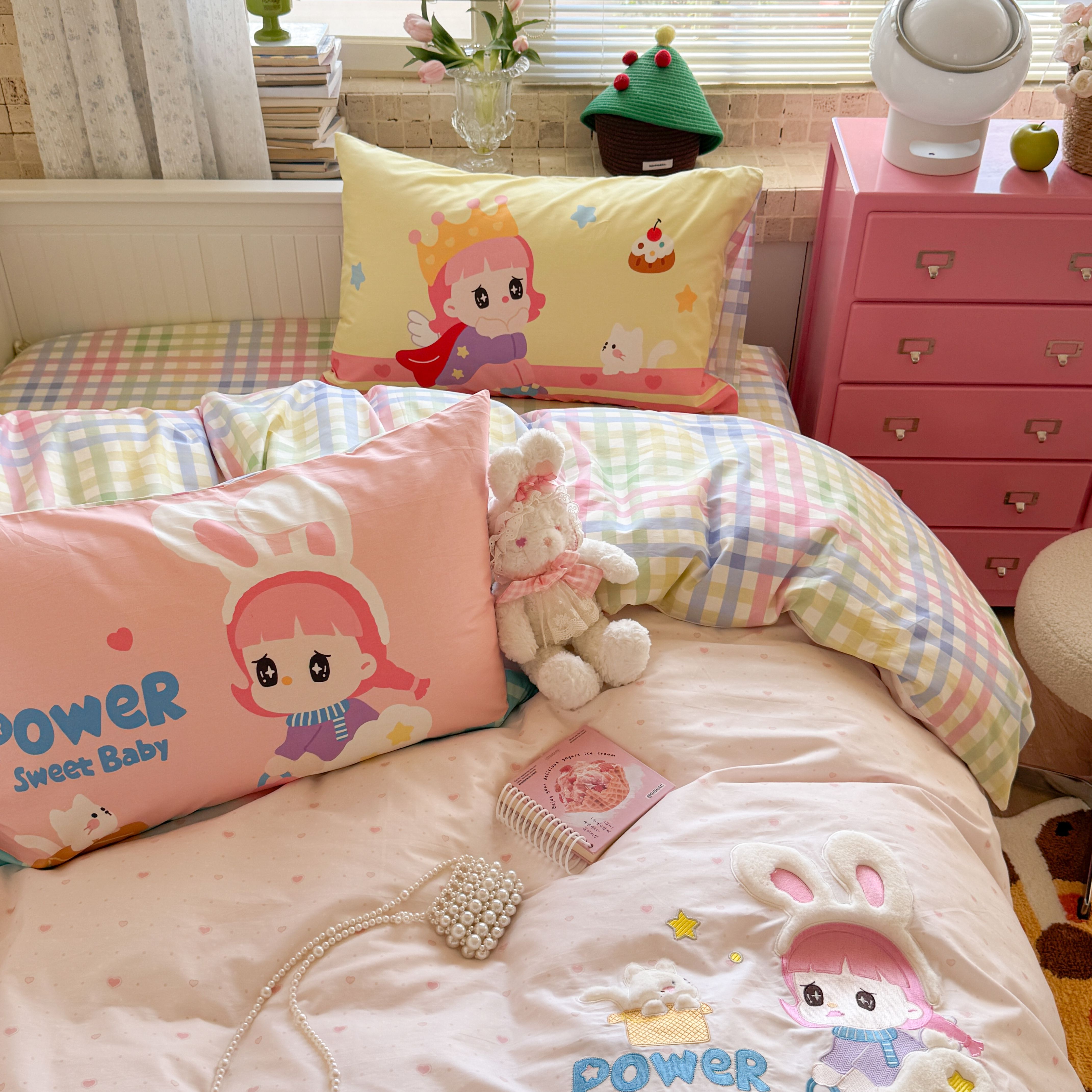 (总)柚子YOUTH 2026新款全棉纯棉水洗棉贴布绣四件套,蛋糕,树精灵,躺平猫,甜甜屋