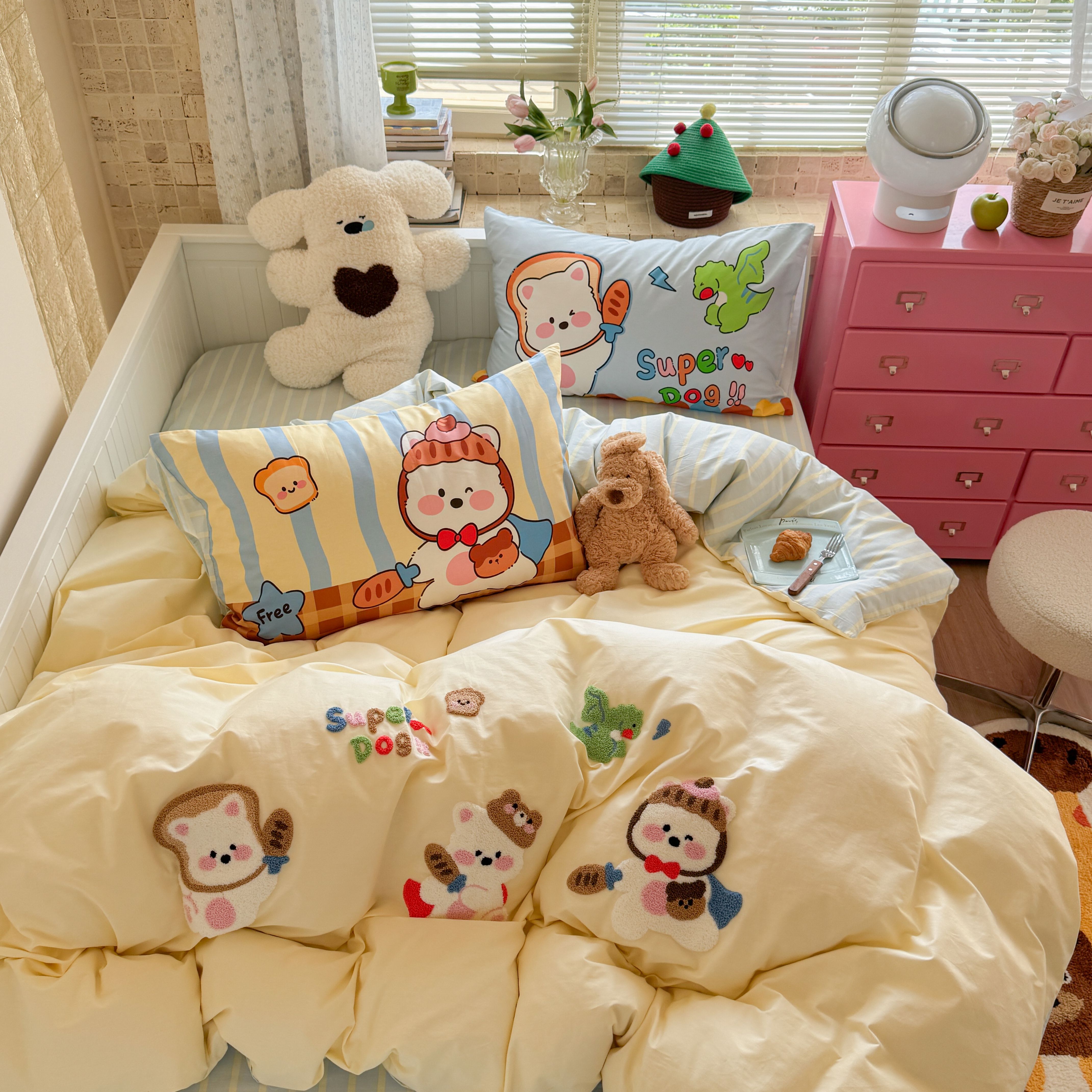 柚子YOUTH 2025新款全棉A类母婴级卡通绣花四件套 小狗面包