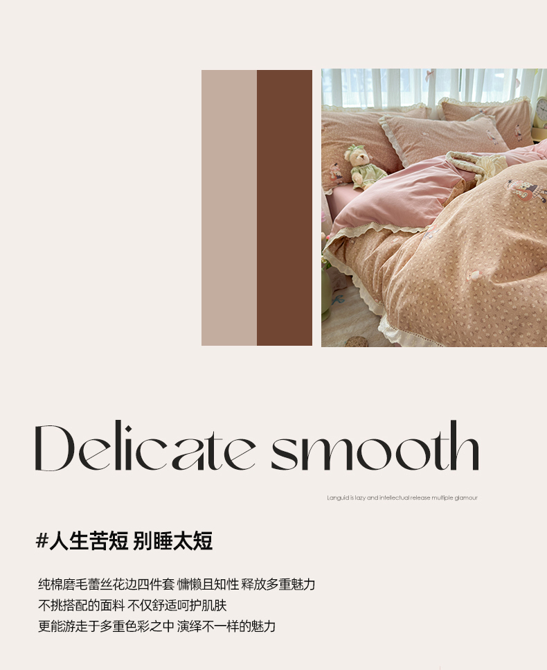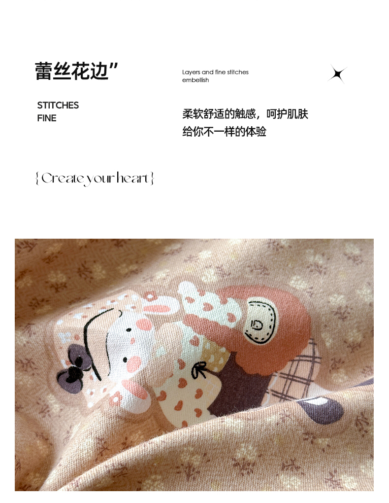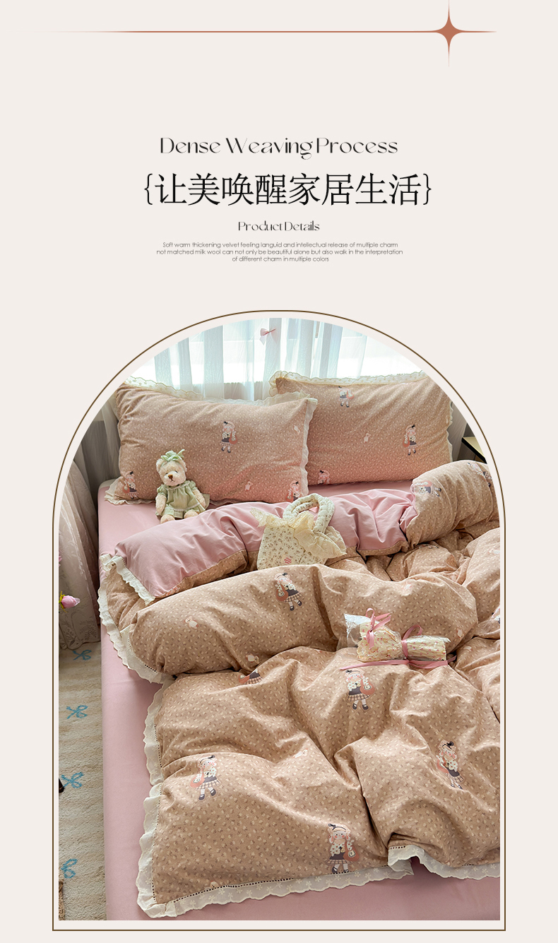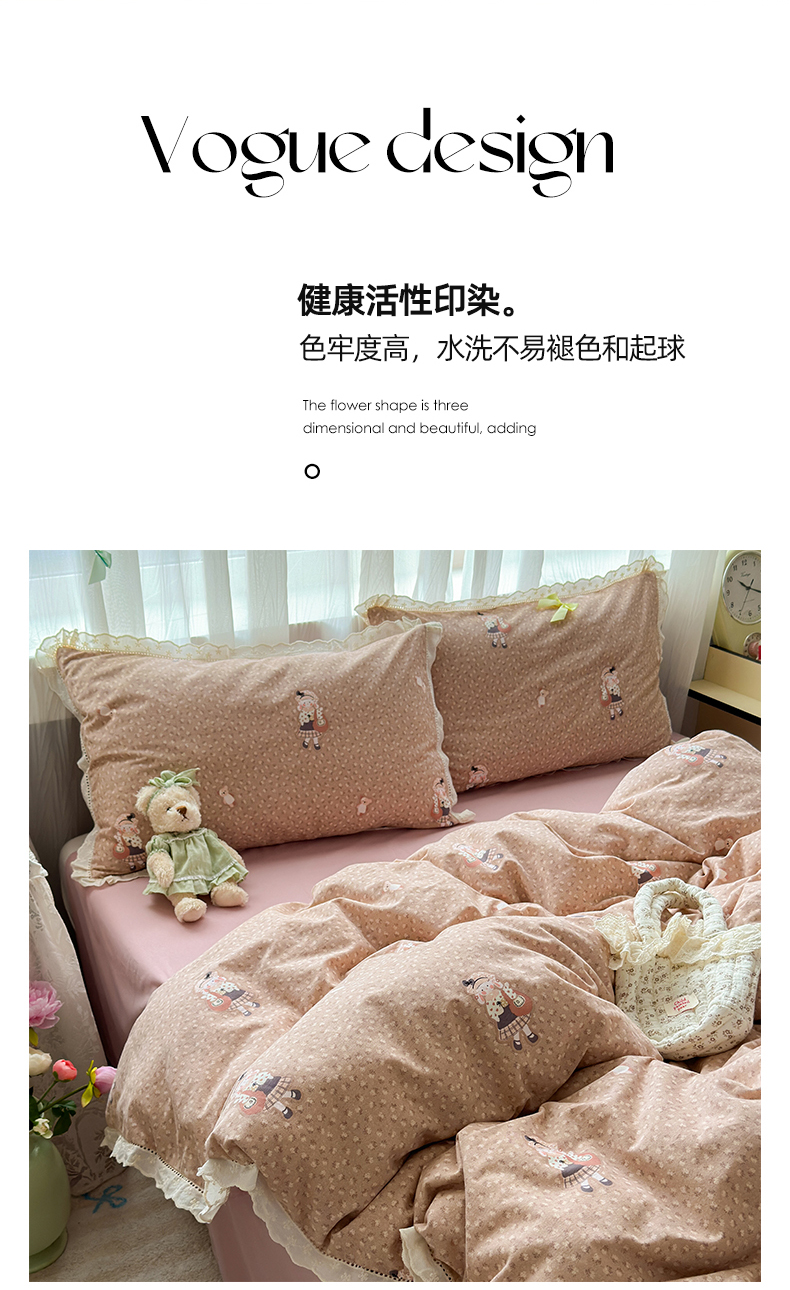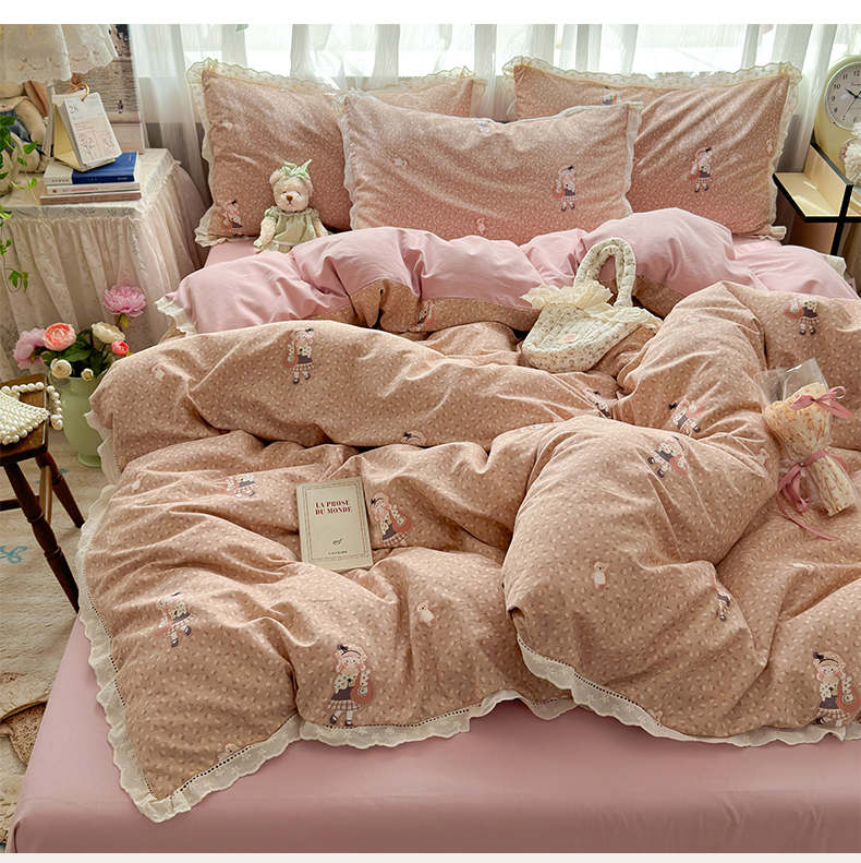 简宜家居(朝初家纺) 2025新款全棉磨毛蕾丝花边四件套 兔兔花被窝