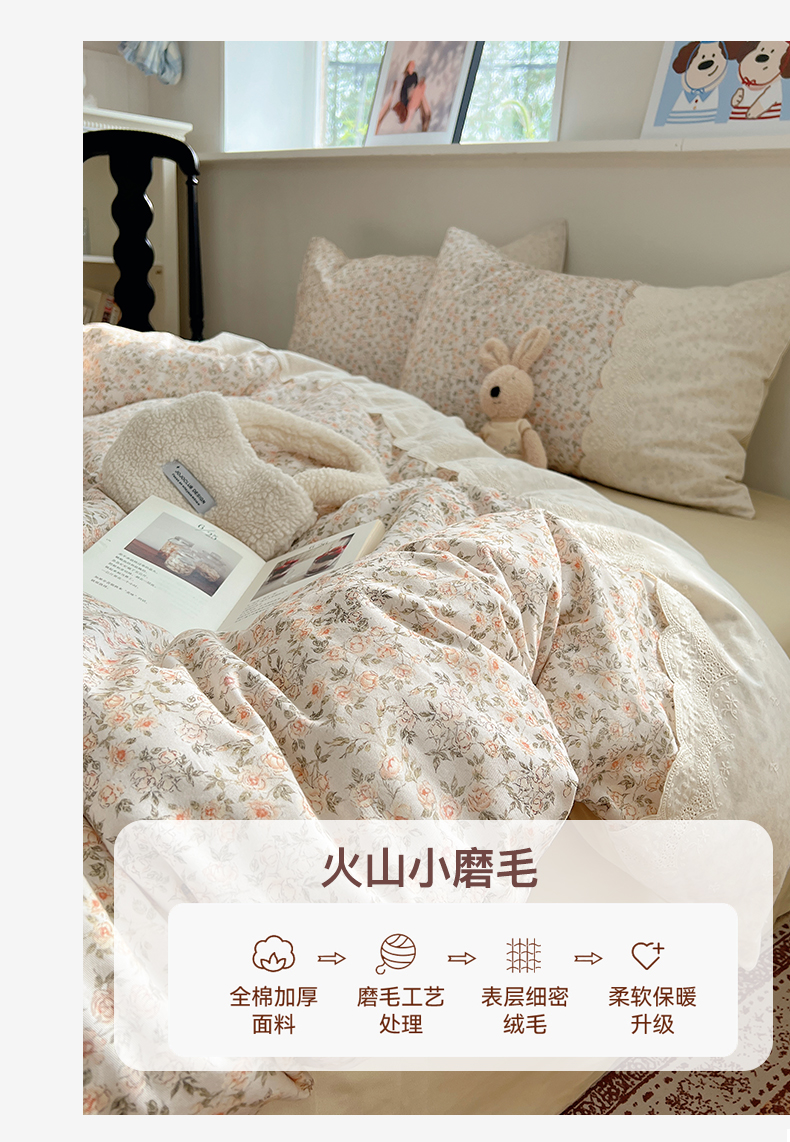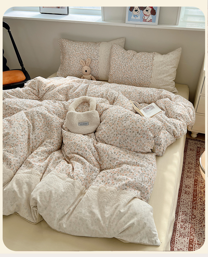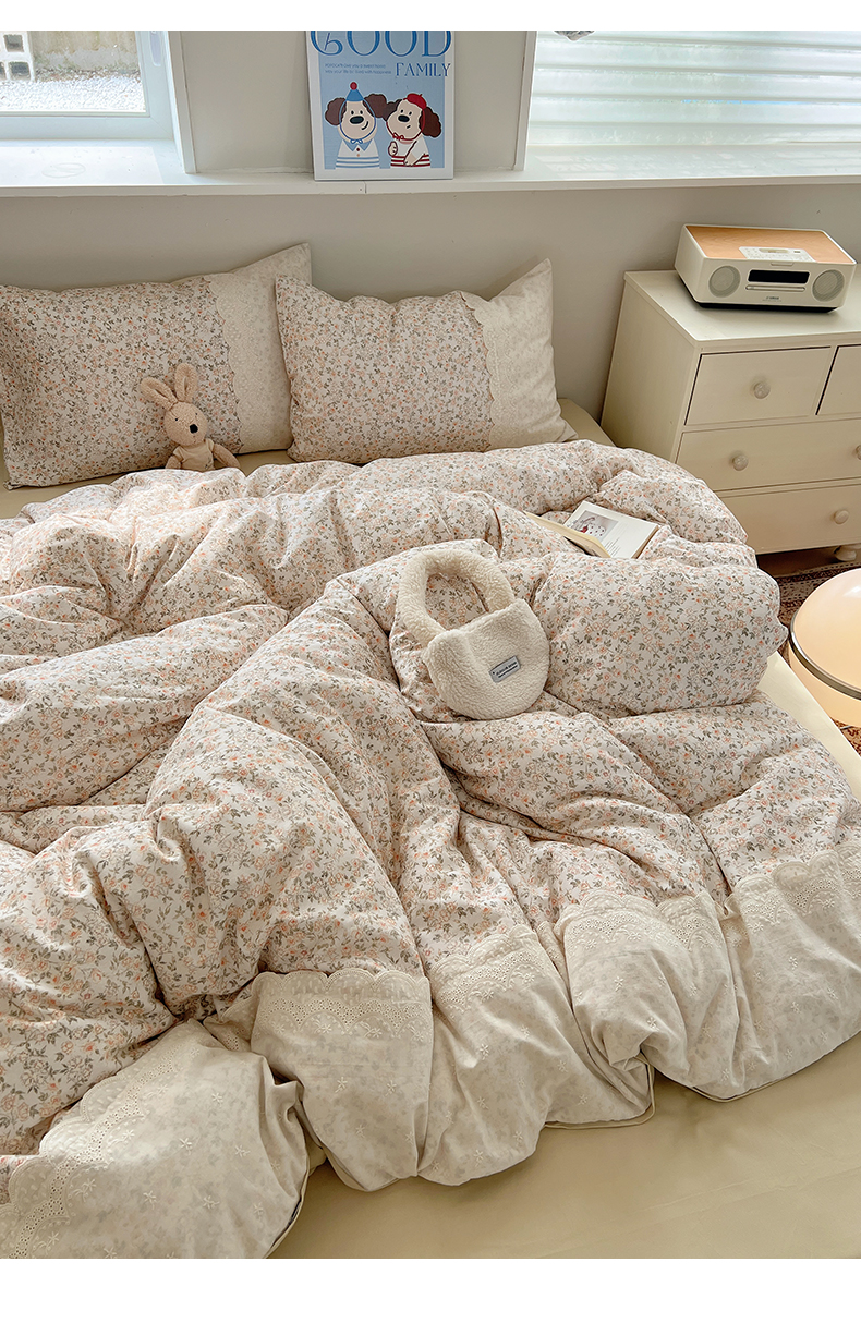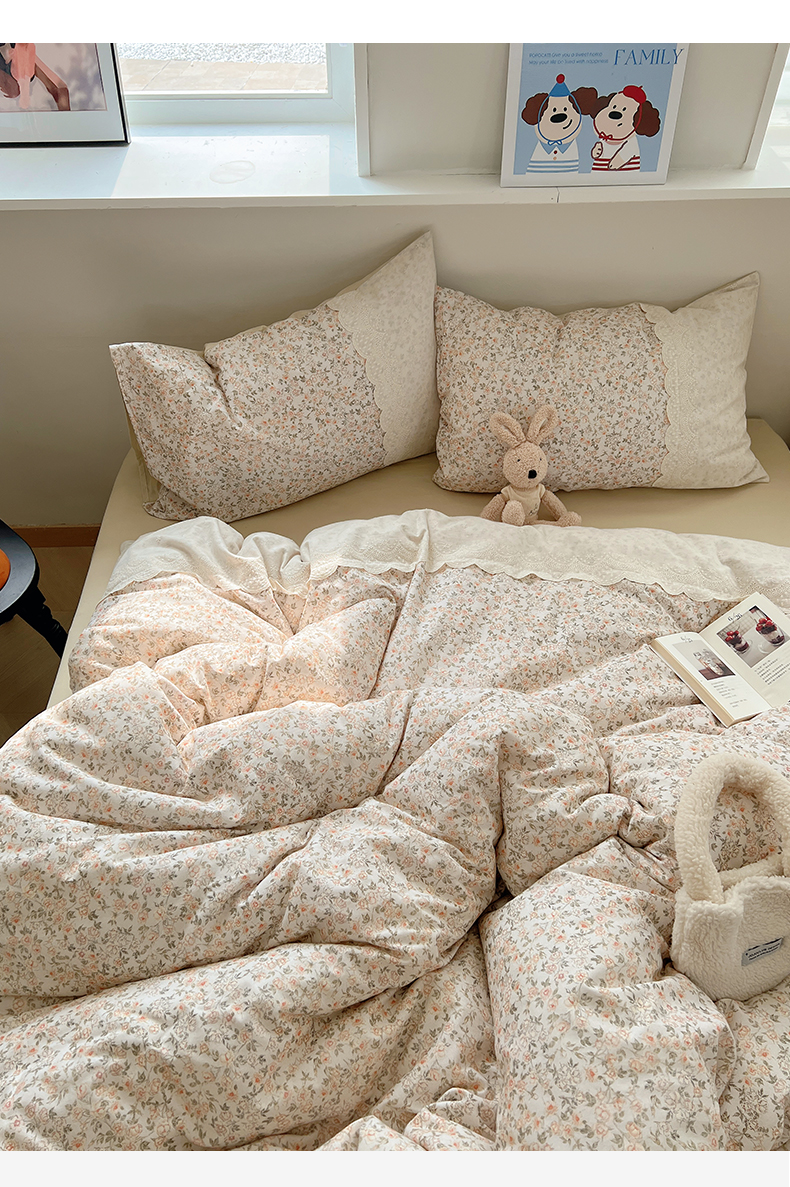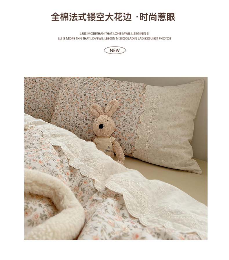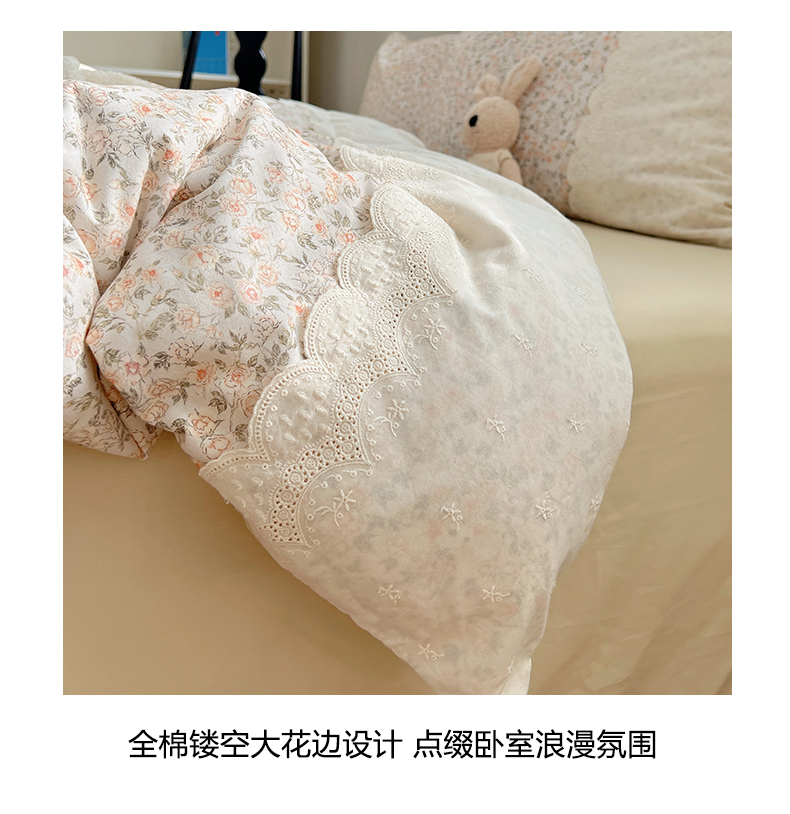 当前位置: 91家纺网 > 商品网购 > 床品套件 > 四件套 > 普通磨毛四件套 > XIWEN-希文家纺 2025新款全棉淑女花边数码印花磨毛四件套 浪漫人生-米