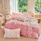 (总)【苏东来】2026韩版蕾丝花边纯棉全棉双层纱四件套印花纯棉四件套法式赫本木耳花边全棉公主双层纱四件套,紫薇花,夕颜,海盐气泡蓝,白玫瑰,晴空,香槟玫瑰,白茶,暗香,玫瑰庄园,甜心小兔粉,蜜桃玫瑰,小苍兰,小梨漫,春意浓,西海岸蓝,西海岸紫,马卡龙,春日女孩,兔软软,樱花,花漾甜心,紫苏,乌梅子酱