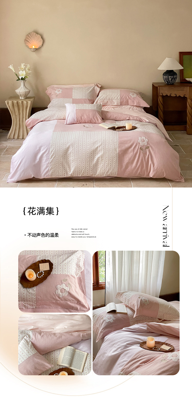 当前位置: 91家纺网 > 商品网购 > 床品套件 > 四件套 > 全棉普通四件套 > FORTWO家纺原创设计(FOR TWO家纺) 2025新款全棉纯棉百家布水洗棉印花绣花拼接款四件套 花满集