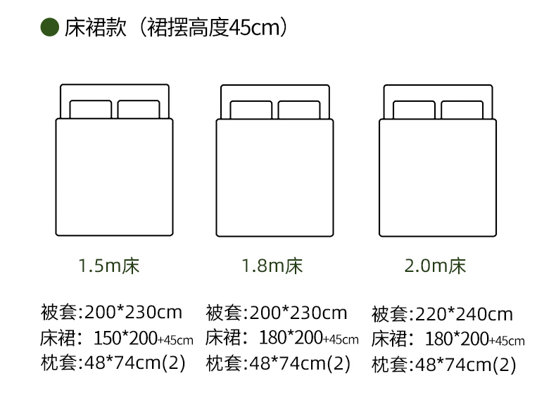 【床裙款】1.8四件套-被套200x230 | ¥135.00 |