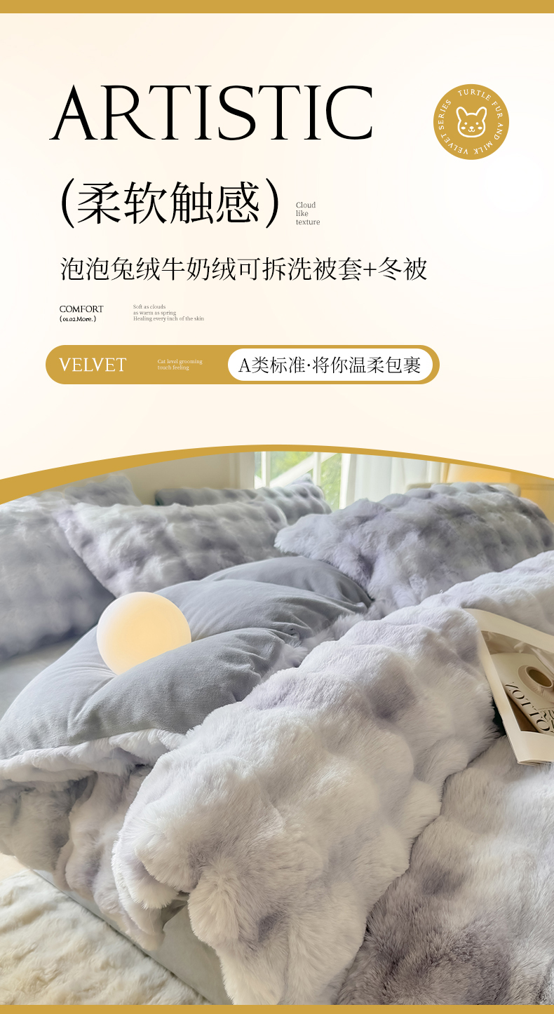 • 91家纺网 家纺一手货源 找家纺 品乐家纺 2025新款A类泡泡兔绒可拆洗冬被被子被芯(被套+被芯) 渐变-莫奈灰
