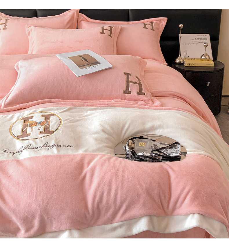 (总)苹果星家纺 2025新款高克重纯色牛奶绒刺绣四件套-奢香夫人,奢香夫人-粉,奢香夫人-杏,奢香夫人-紫,奢香夫人-蓝