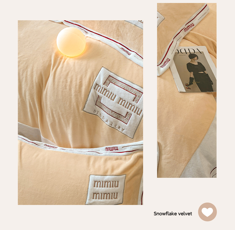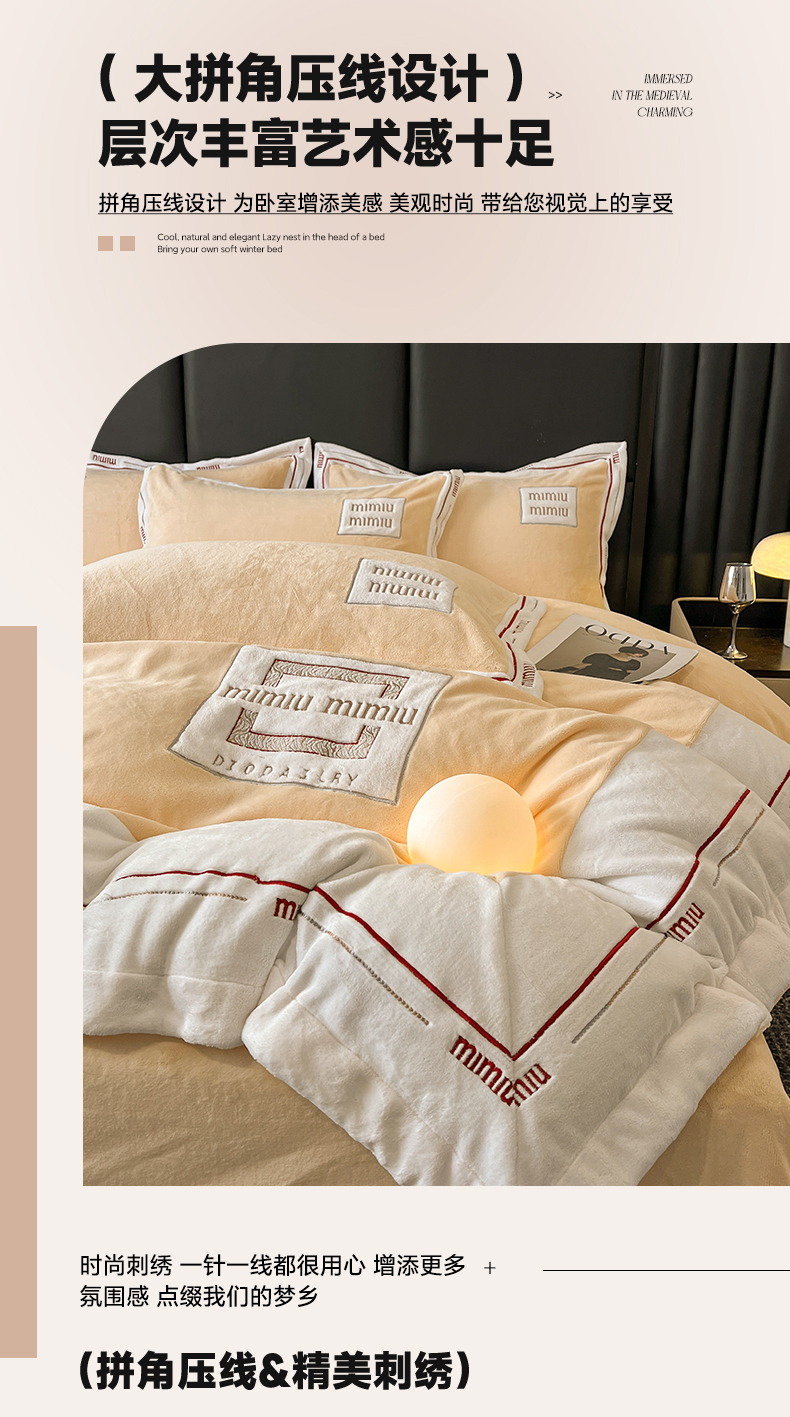 苹果星家纺 2025新款无印良品风230克全消光牛奶绒大拼角压线刺绣四件套-塔莉 塔莉-黄
