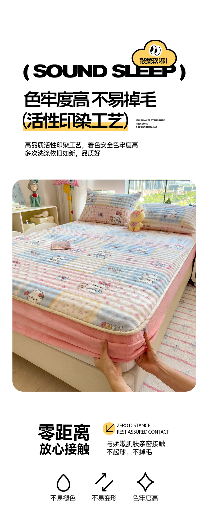 (总)摩妮卡 2025新款加厚保暖牛奶绒夹棉绣花床垫三件套,呆呆熊-蓝,呆呆熊-黄,呆呆熊-咖,Kitty猫-白,Kitty猫-粉,Kitty猫-紫