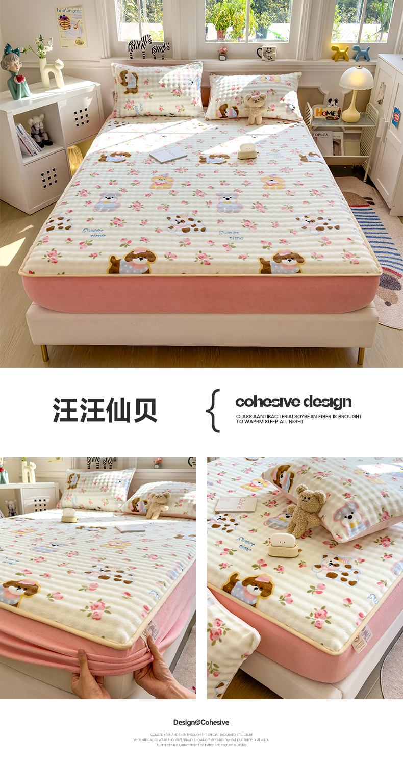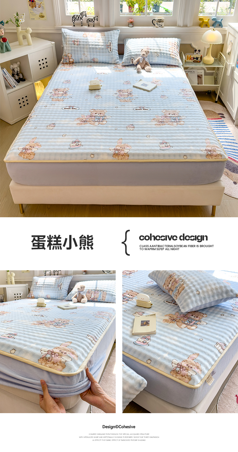 (总)摩妮卡 2025新款加厚保暖牛奶绒夹棉绣花床垫三件套,呆呆熊-蓝,呆呆熊-黄,呆呆熊-咖,Kitty猫-白,Kitty猫-粉,Kitty猫-紫