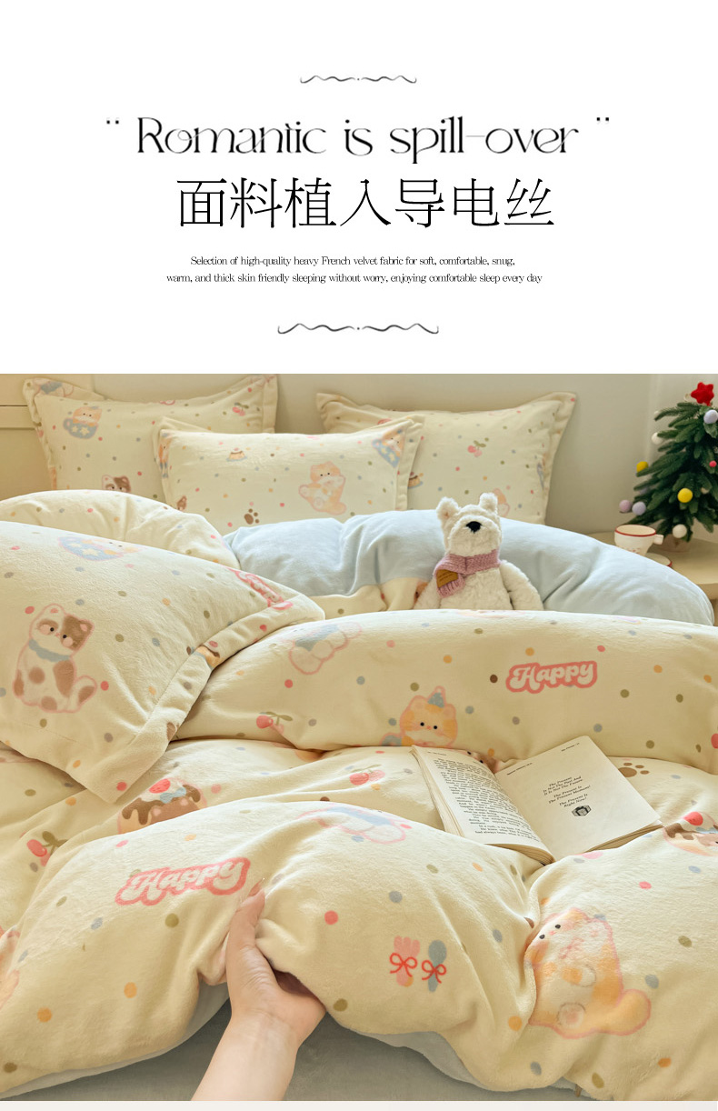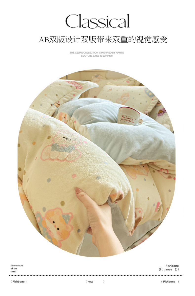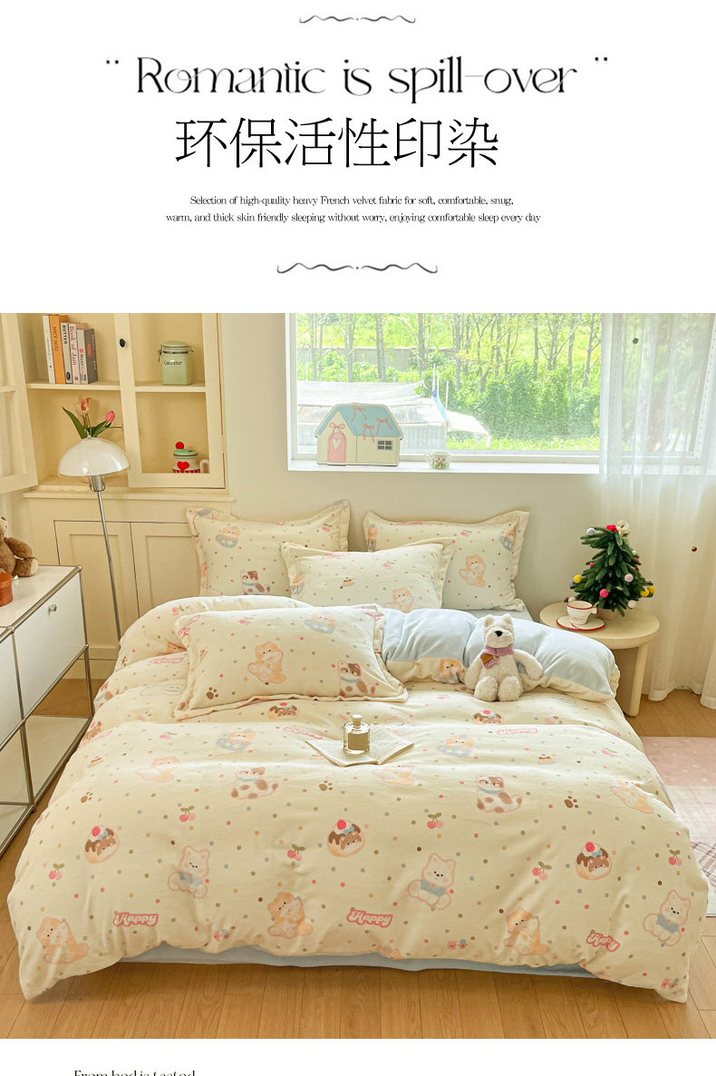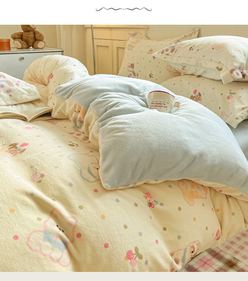 当前位置: 91家纺网 > 商品网购 > 床品套件 > 四件套 > 牛奶绒四件套 > 柒月家居 2025新款高克重牛奶绒印花加厚保暖四件套 波点萌宝