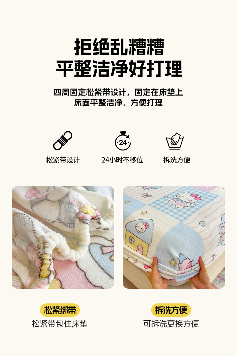 • 91家纺网 家纺一手货源 找家纺 (总)摩妮卡 2025新款牛奶绒贴布绣绒床笠保护床垫三件套,采花的小兔,免兔的日常,内向的小兔,盛日庆祝,甜点魔法师,星星餐点