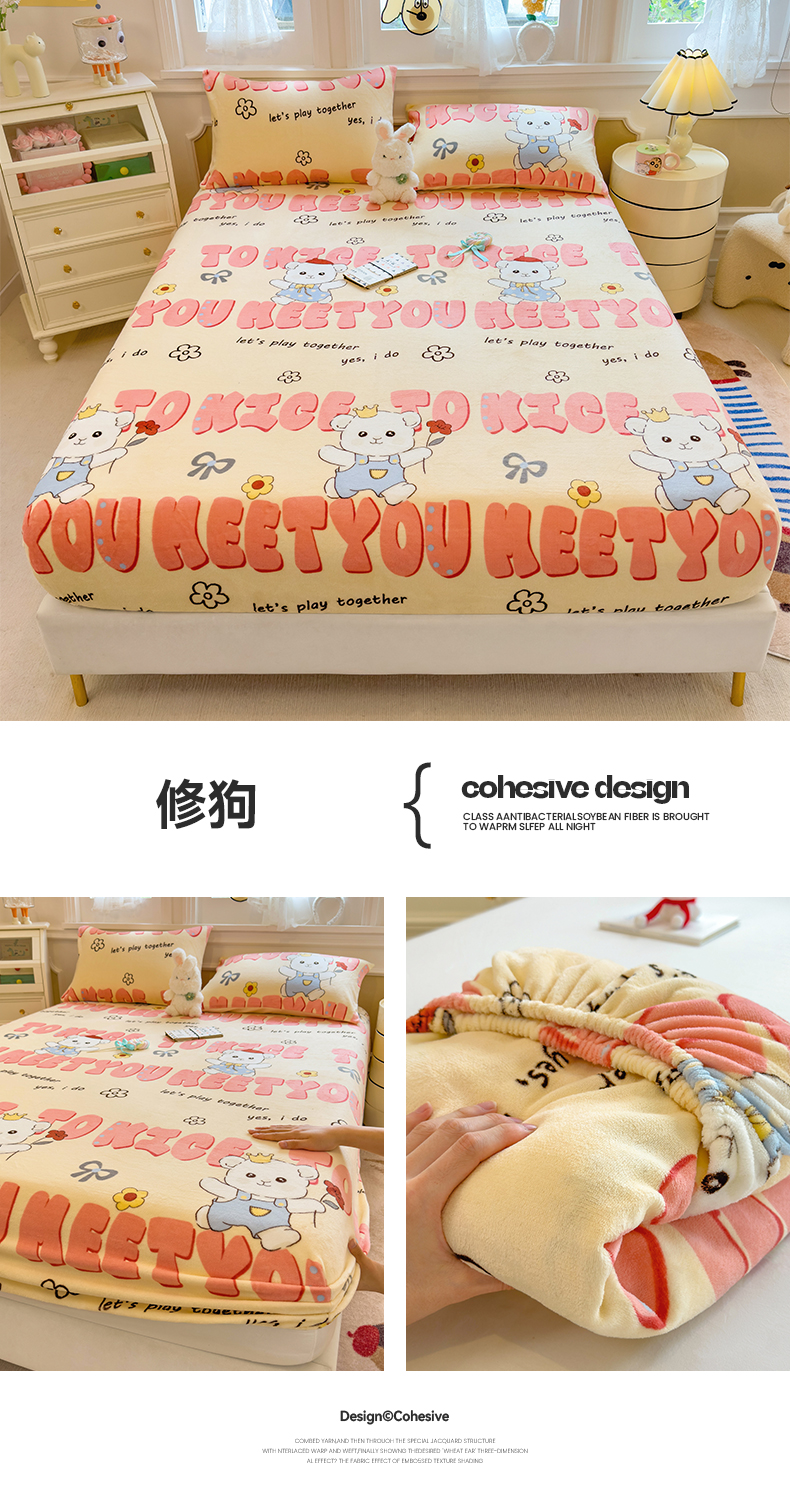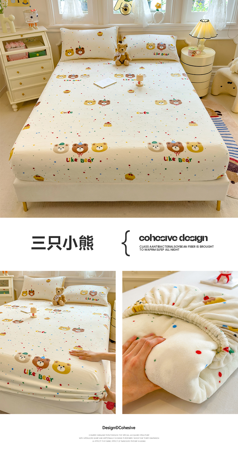 (总)摩妮卡 2025新款加厚保暖牛奶绒夹棉绣花床垫三件套,呆呆熊-蓝,呆呆熊-黄,呆呆熊-咖,Kitty猫-白,Kitty猫-粉,Kitty猫-紫