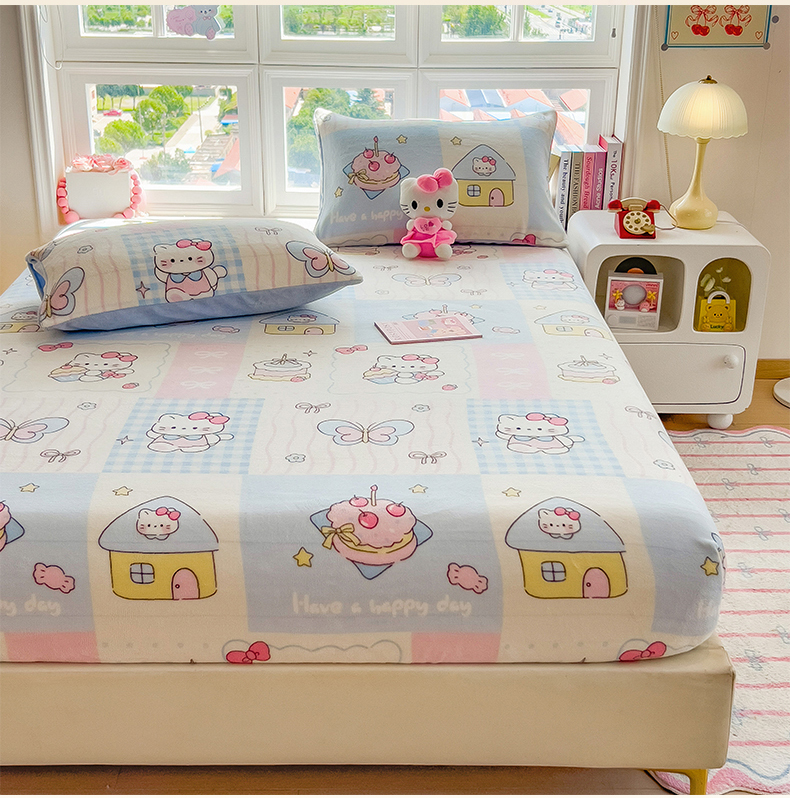 (总)摩妮卡 2025新款牛奶绒枕套混搭卡通复古床盖四件套,甜点凯蒂猫,傍晚凯蒂猫,幸运小猫,线条腊肠狗,生日小猫,粉帽小狗,豹纹小猫,庆祝凯蒂猫